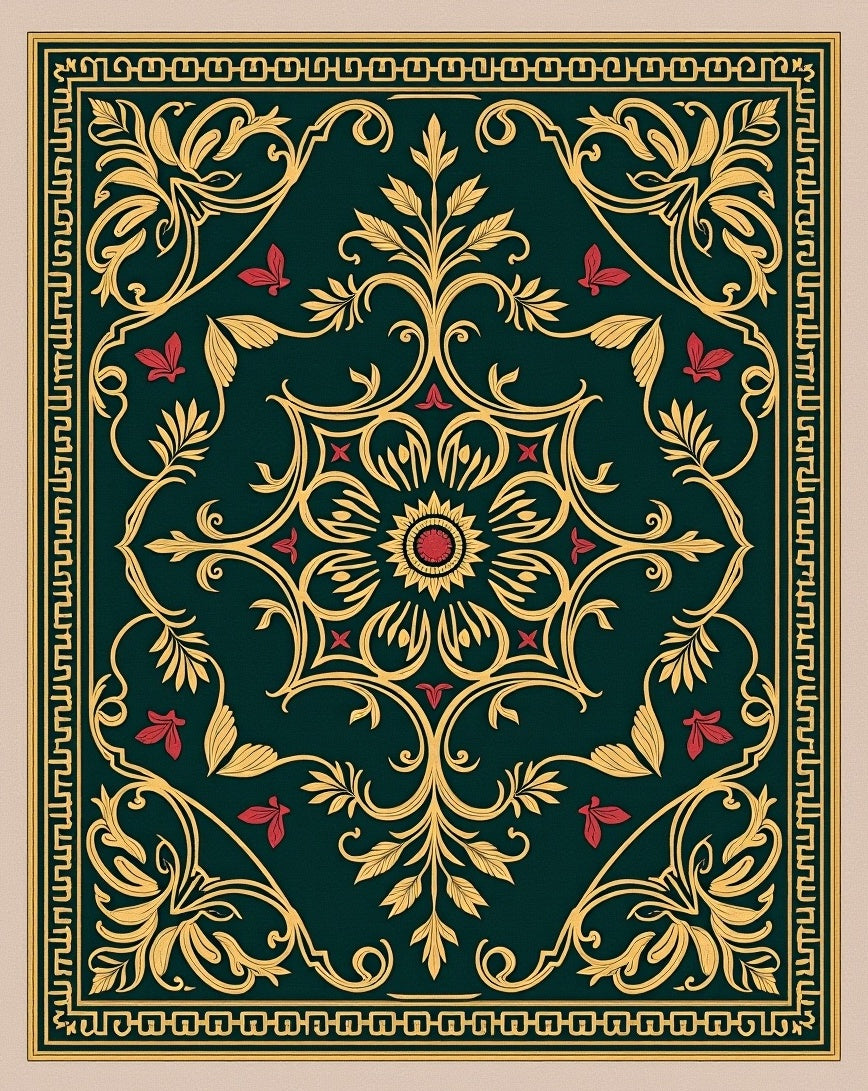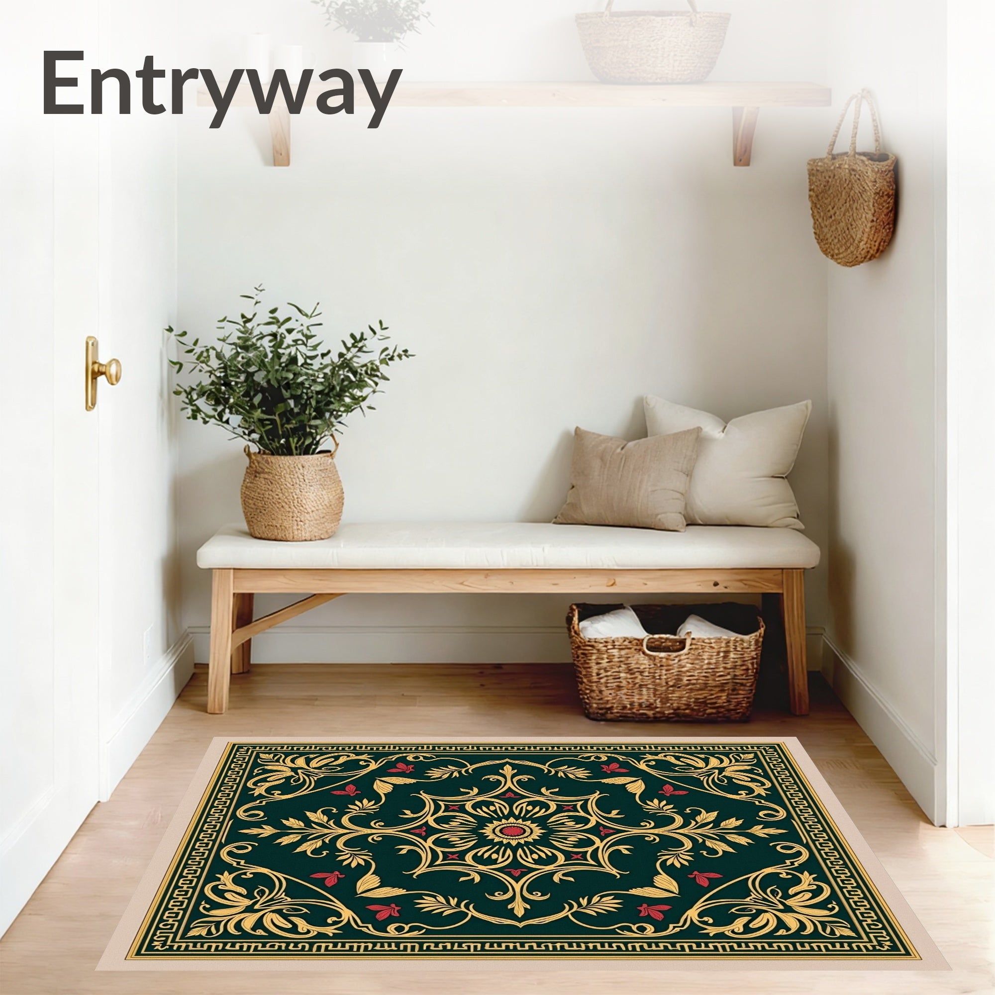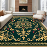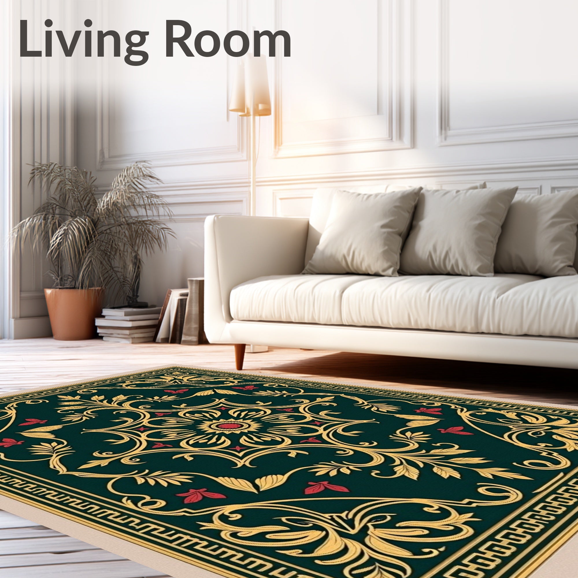 Ultra Soft Area Rug, Non Slip, Stain Resistant, Washable Area Rugs for Living Room, Bedroom, Mystic Forest Foliage with Baroque Arabesque and Moody Filigree Flourish(Green) Overview: