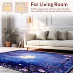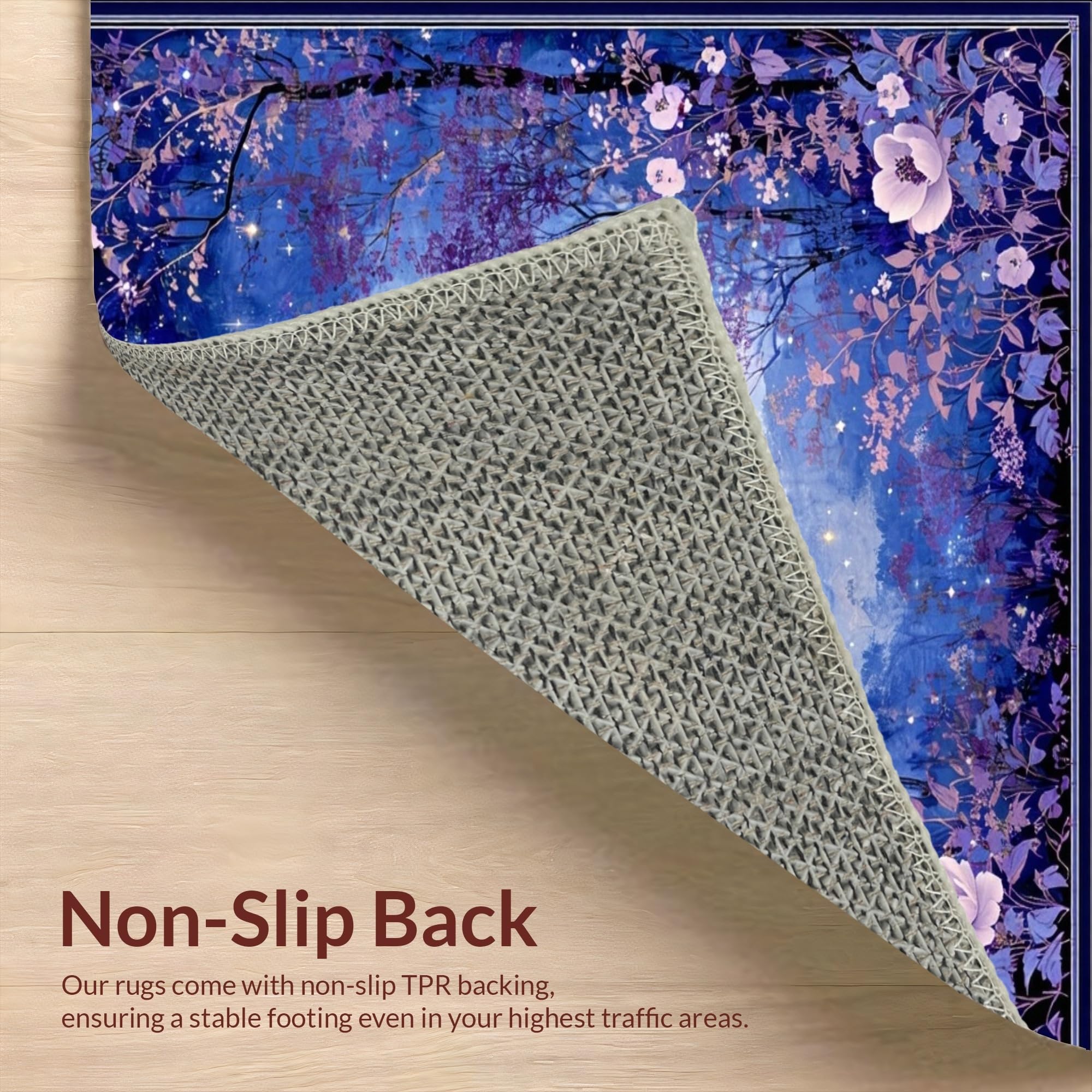 Ultra Soft Area Rug, Non Slip, Stain Resistant, Washable Area Rugs for Living Room, Bedroom, Mystic Meadow Area Celestial Floral Wonders(Blue) Overview: