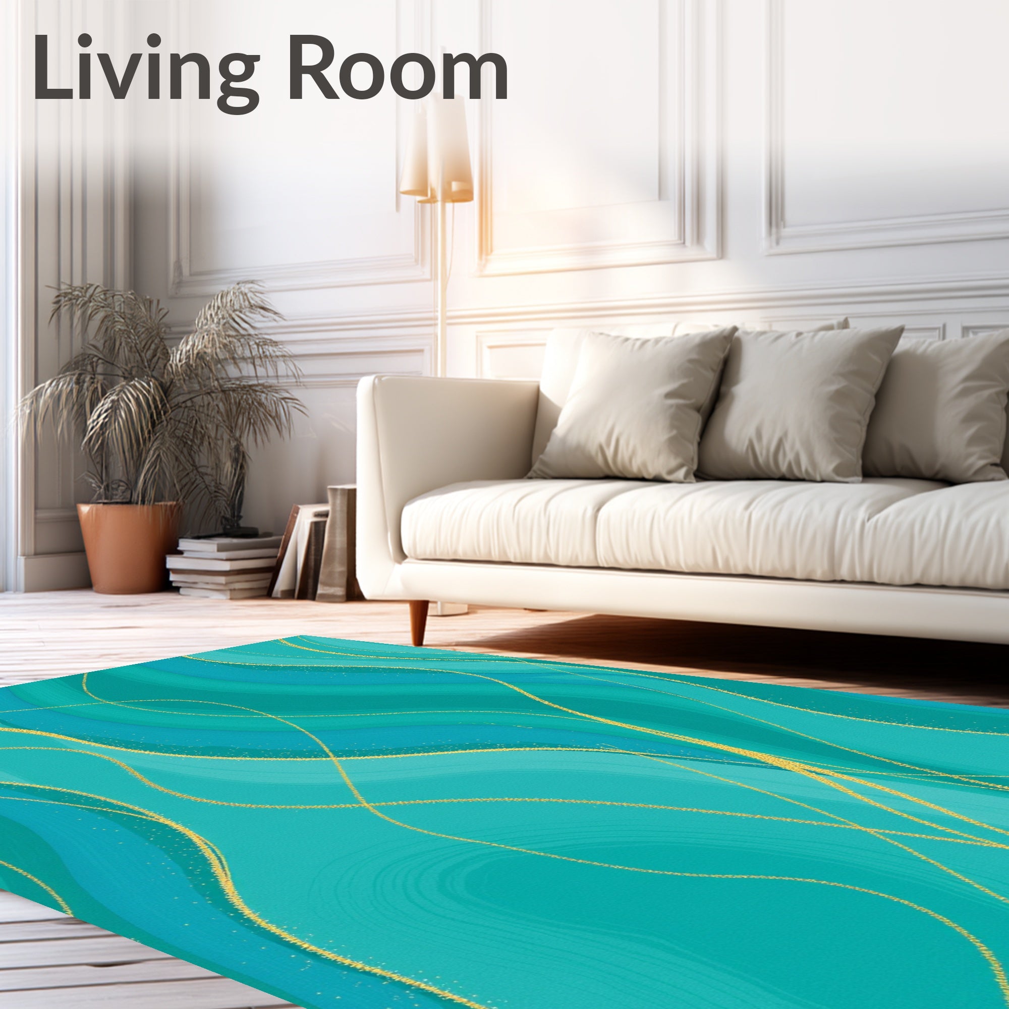 Ultra Soft Area Rug, Non Slip, Stain Resistant, Washable Area Rugs for Living Room, Bedroom, Mystical Azure Stream Elegant Fluid Dynamic(Blue) Overview: