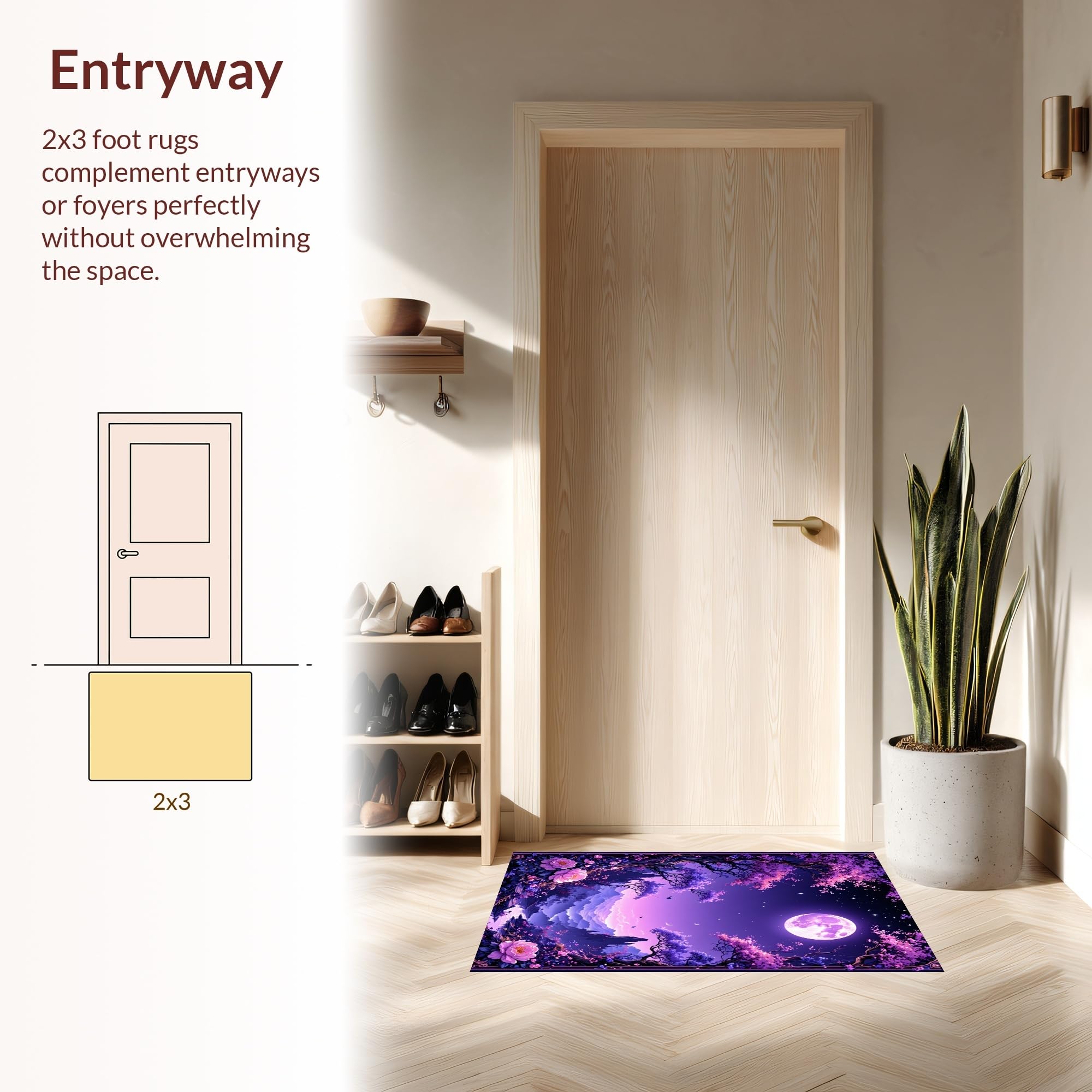 Ultra Soft Area Rug, Non Slip, Stain Resistant, Washable Area Rugs for Living Room, Bedroom, Mystical Fairy Blossom Arrangement(Purple) Overview: