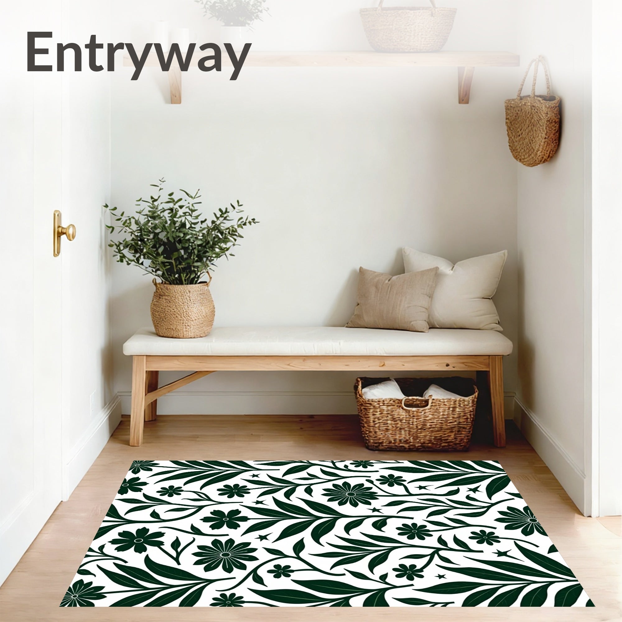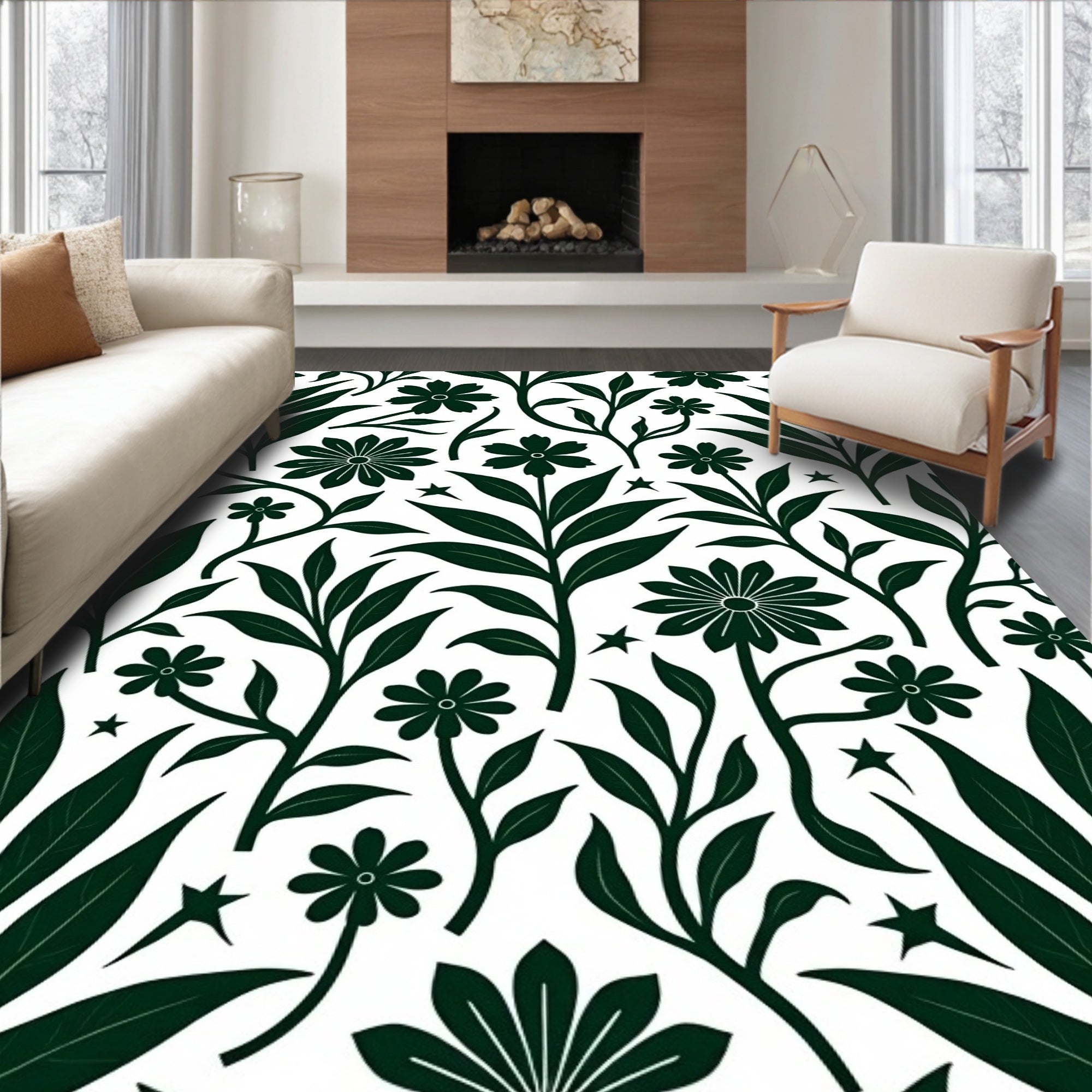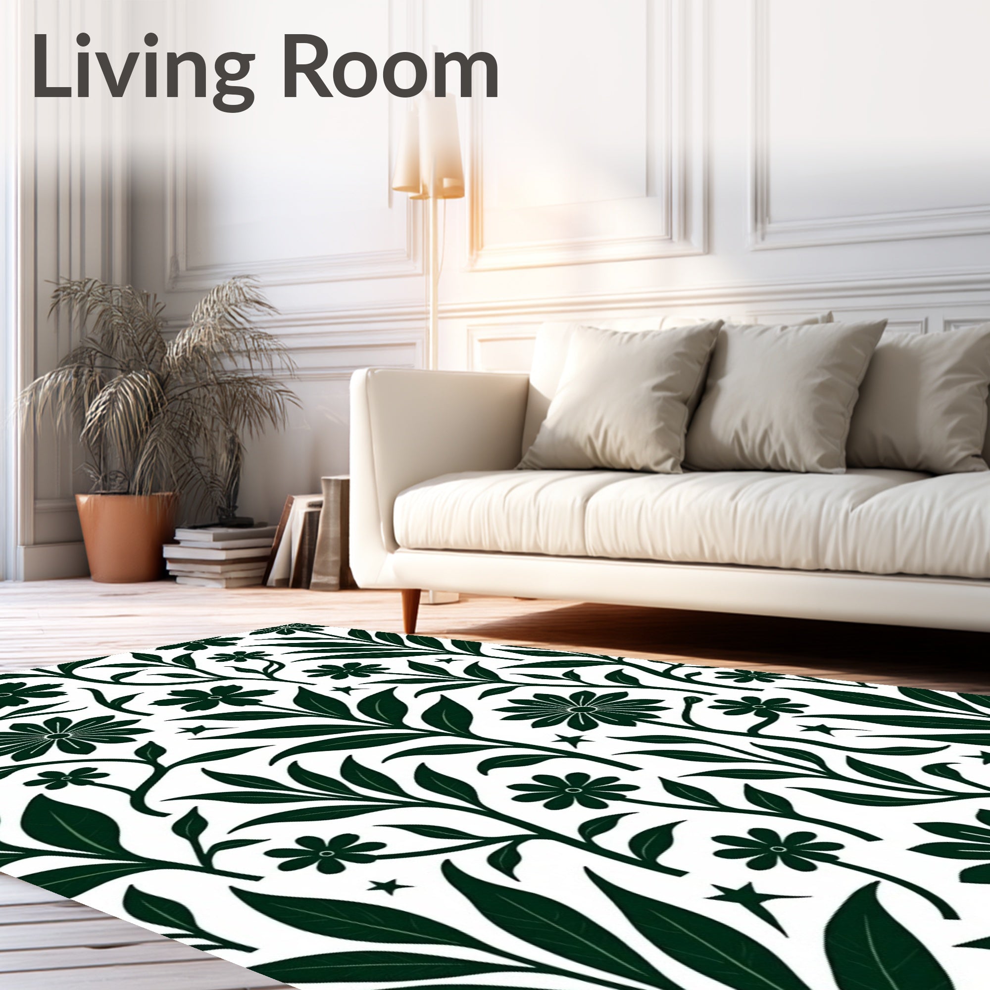 Ultra Soft Area Rug, Non Slip, Stain Resistant, Washable Area Rugs for Living Room, Bedroom, Mystical Garden Enchanted Blooms Artistic Nouveau(Green) Overview: