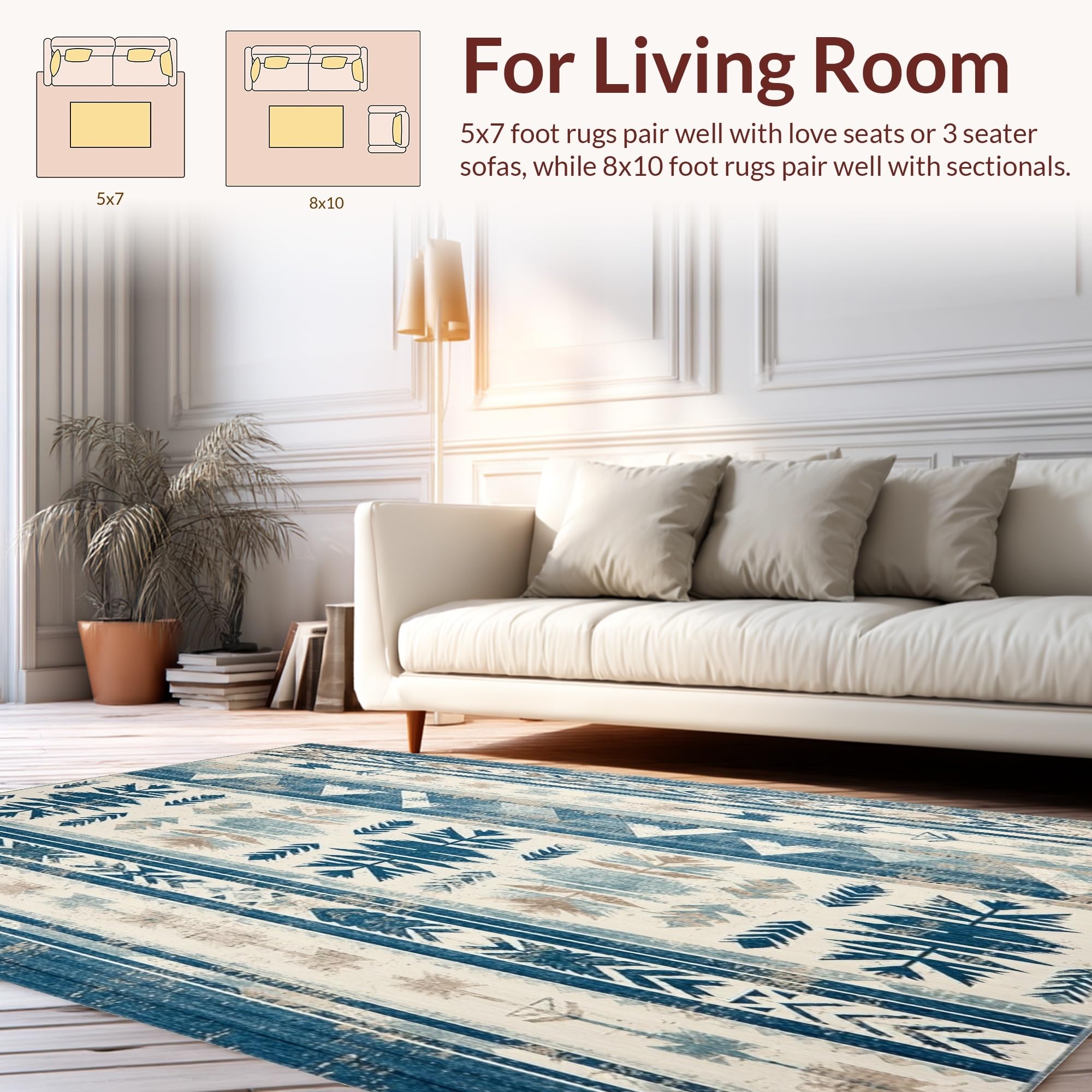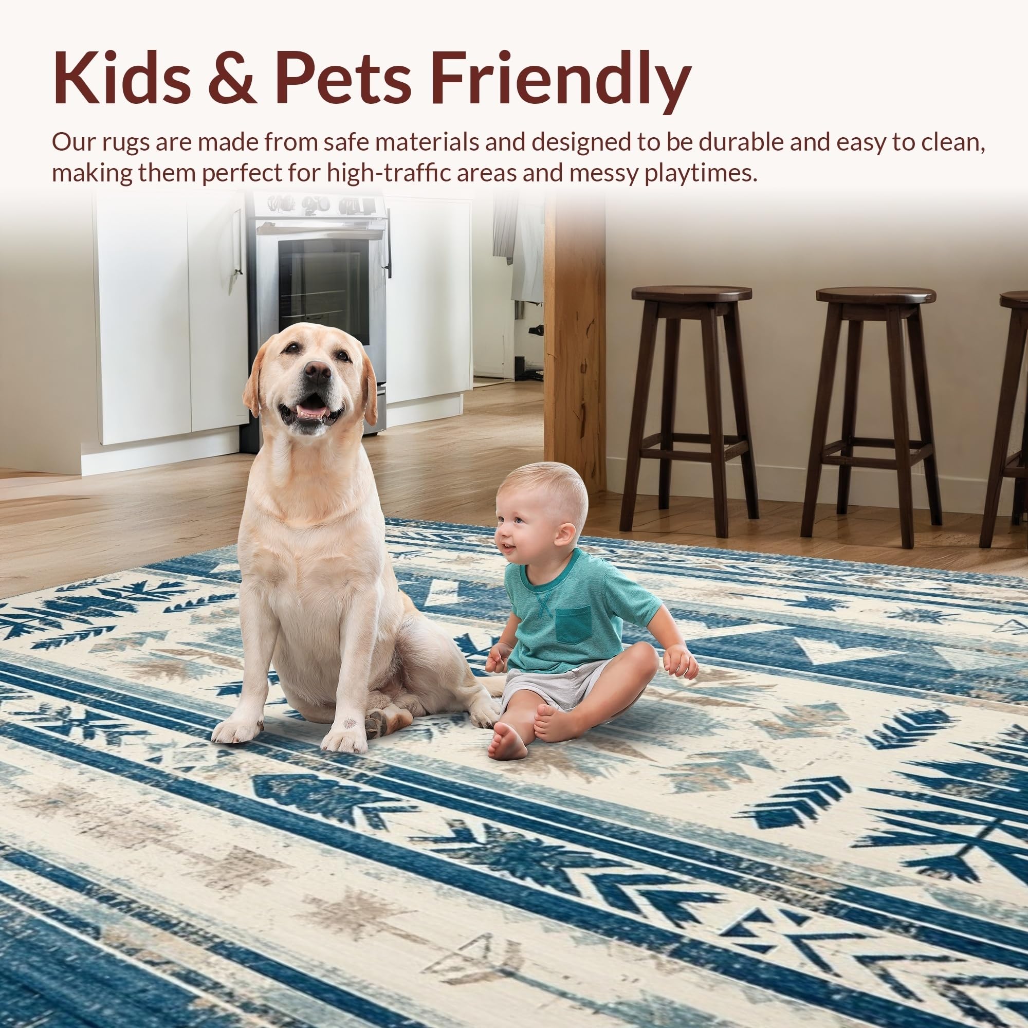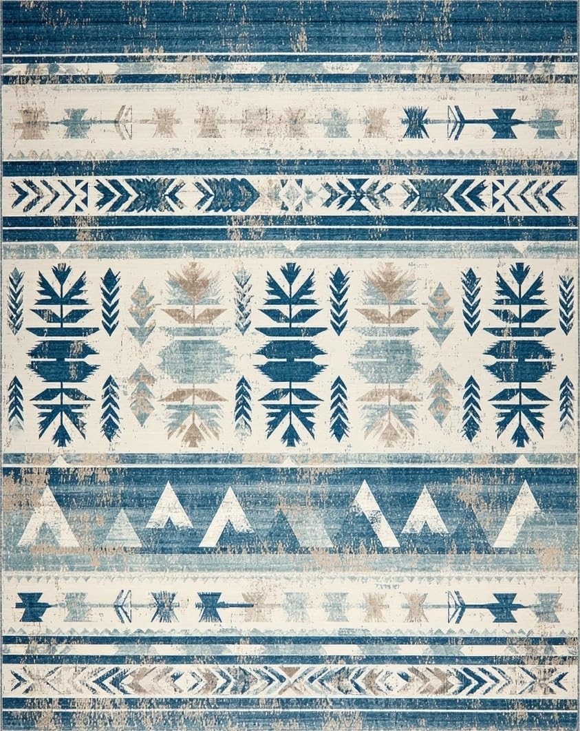 Ultra Soft Area Rug, Non Slip, Stain Resistant, Washable Area Rugs for Living Room, Bedroom, Native American Inspired Area Tribal Plant(Blue) Overview: