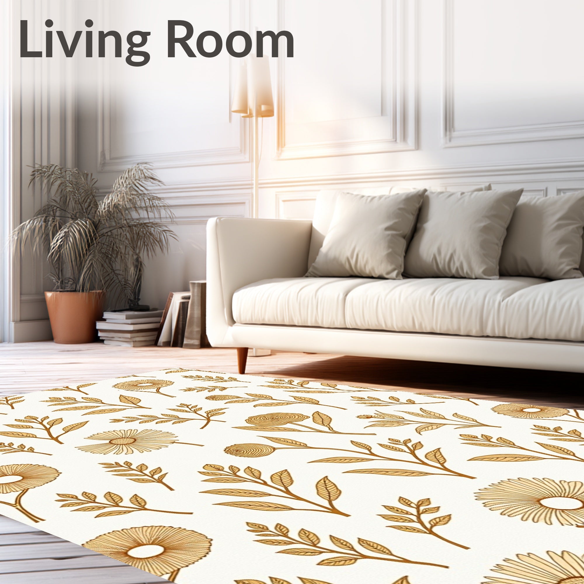 Ultra Soft Area Rug, Non Slip, Stain Resistant, Washable Area Rugs for Living Room, Bedroom, Natural Countryside Floral Sketch Elegant Entryway(White) Overview: