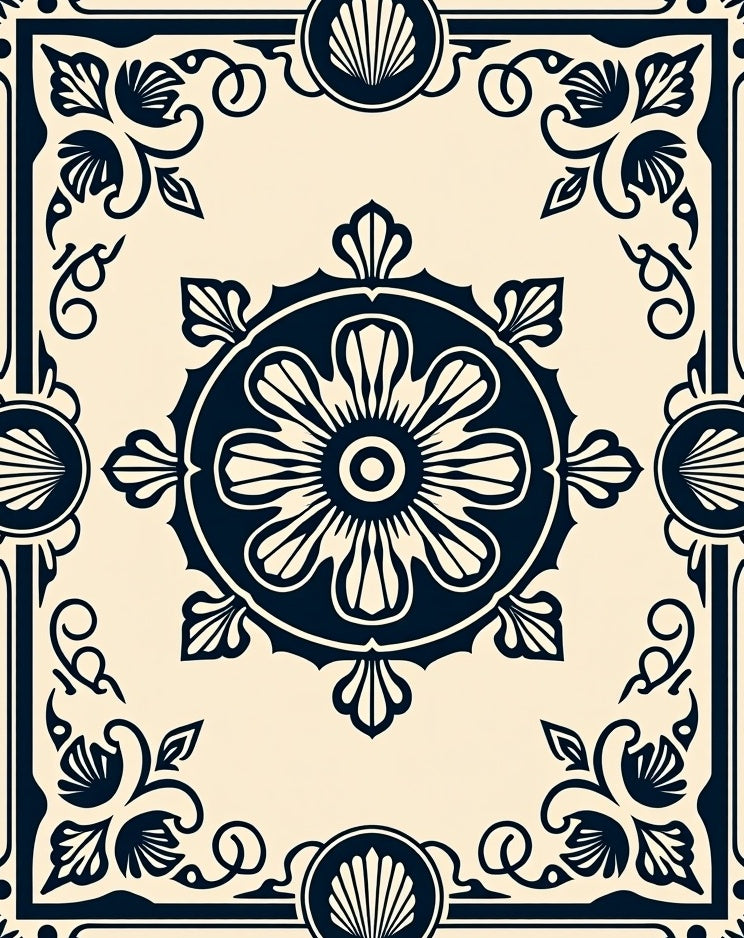 Nautical Medallion with Shell Motifs and Wavy Borders(Beige)