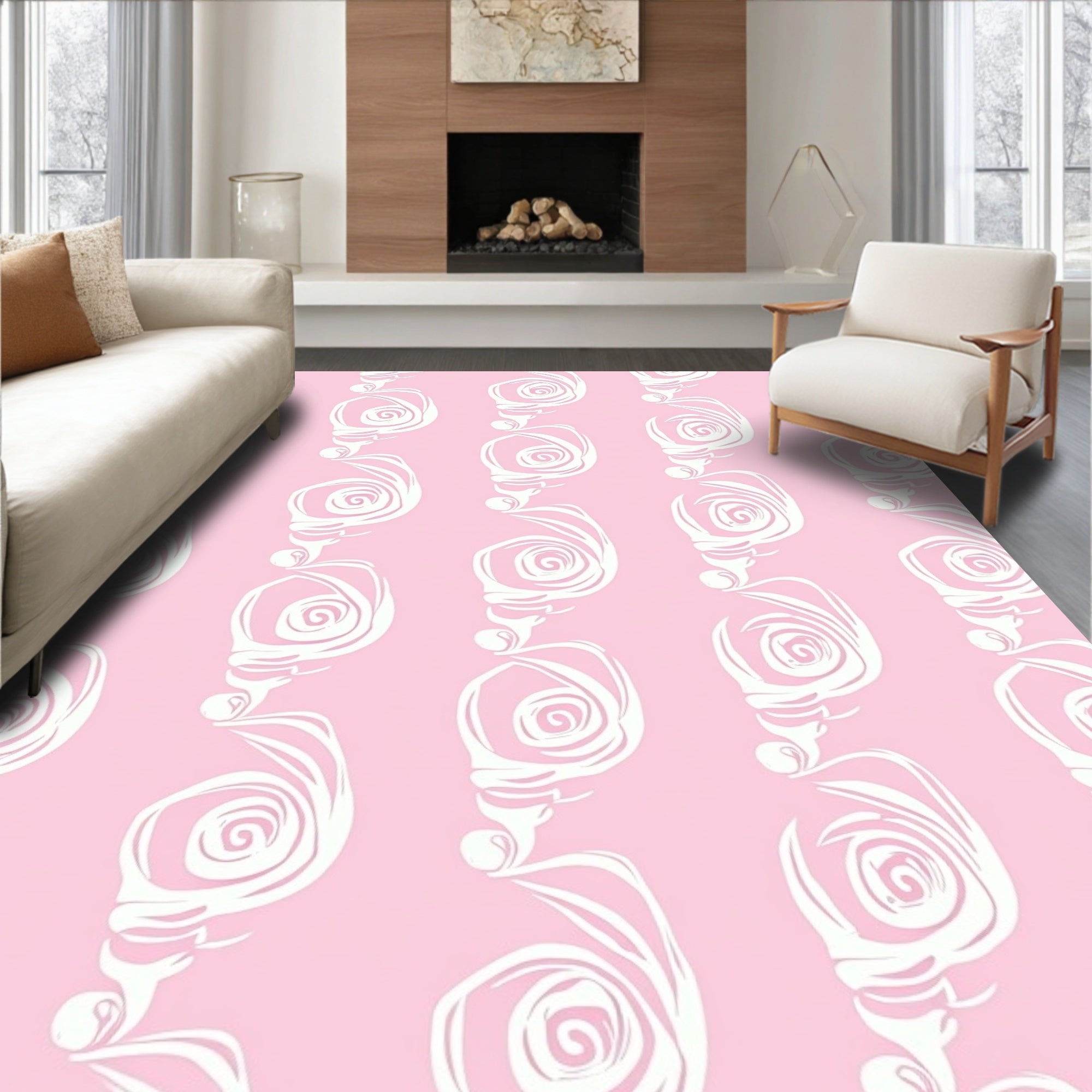 Ultra Soft Area Rug, Non Slip, Stain Resistant, Washable Area Rugs for Living Room, Bedroom, Nautilus Shell Spiral Swirl Accent(Pink) Overview: