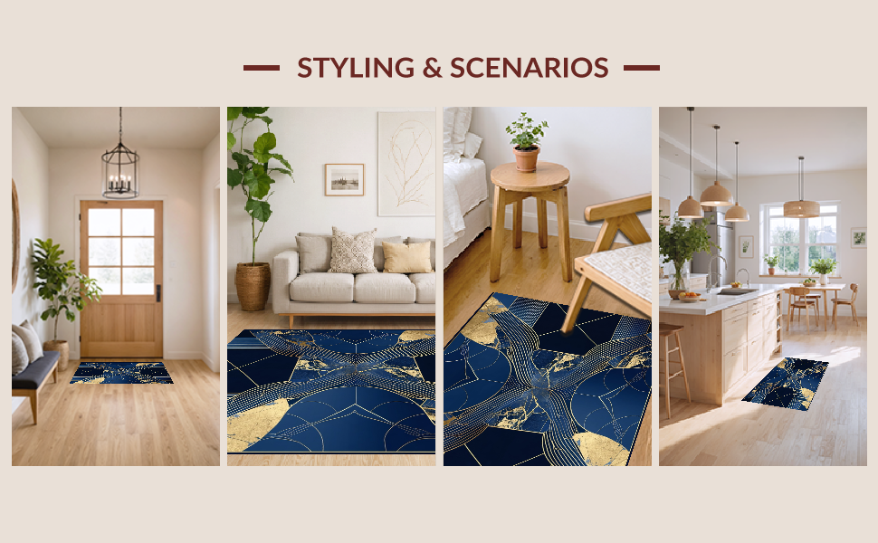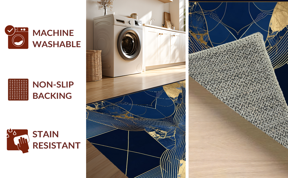 Ultra Soft Area Rug, Non Slip, Stain Resistant, Washable Area Rugs for Living Room, Bedroom, Navy Gold Abstract Marble Design(Blue) Overview: