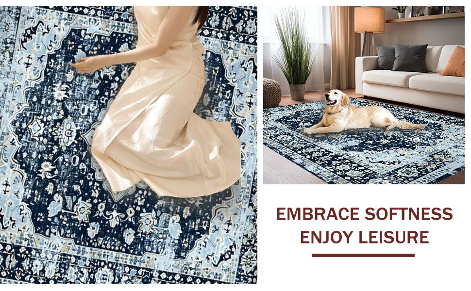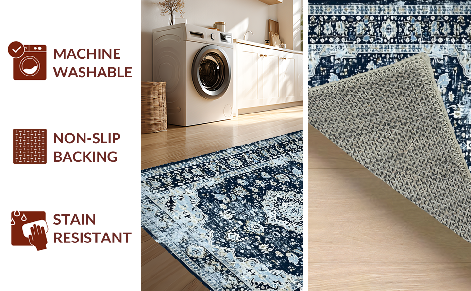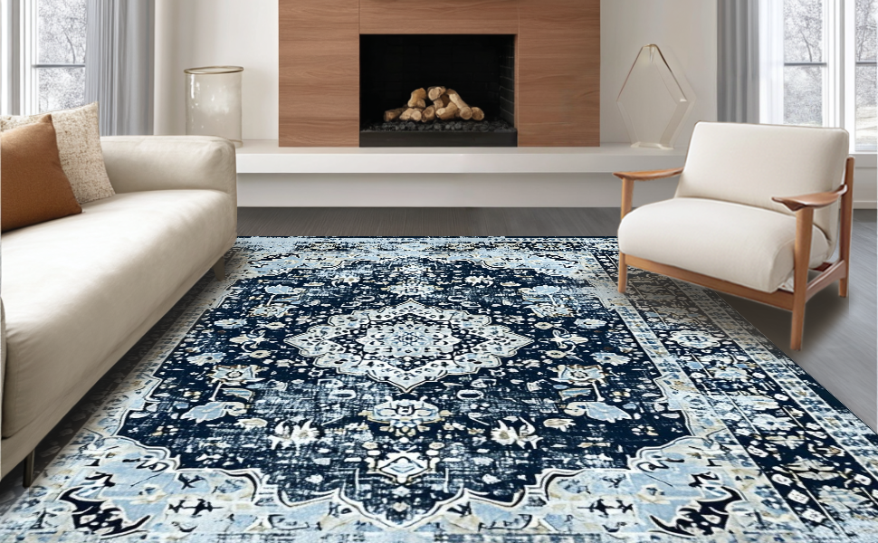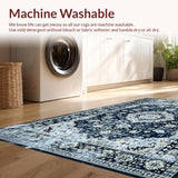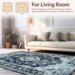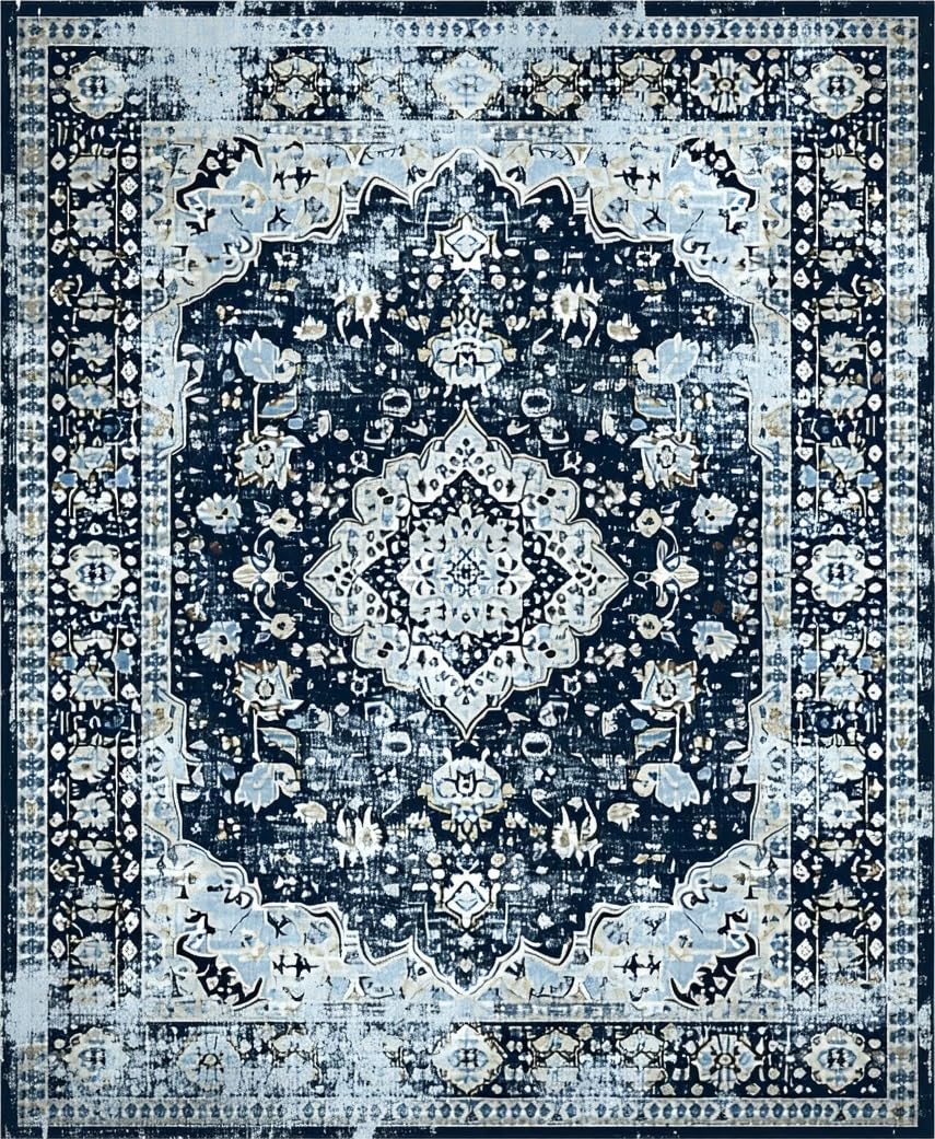 Ultra Soft Area Rug, Non Slip, Stain Resistant, Washable Area Rugs for Living Room, Bedroom, Navy Toned Vintage Floral Motif(Blue) Overview: