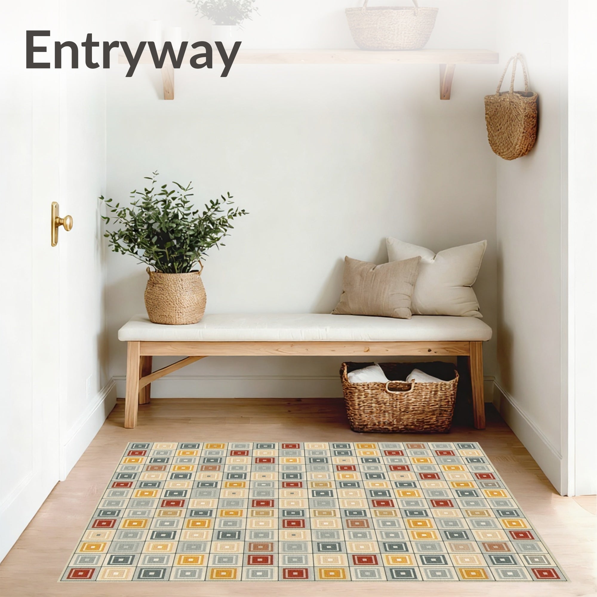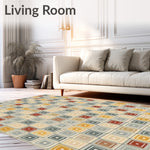 Ultra Soft Area Rug, Non Slip, Stain Resistant, Washable Area Rugs for Living Room, Bedroom, Nepenthe Beige Tonal Checked Modern Area(Beige) Overview: