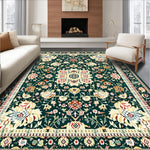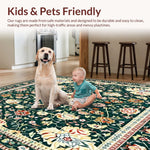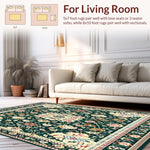 Ultra Soft Area Rug, Non Slip, Stain Resistant, Washable Area Rugs for Living Room, Bedroom, Neutral Boho with Floral Motifs(Dark Green) Overview: