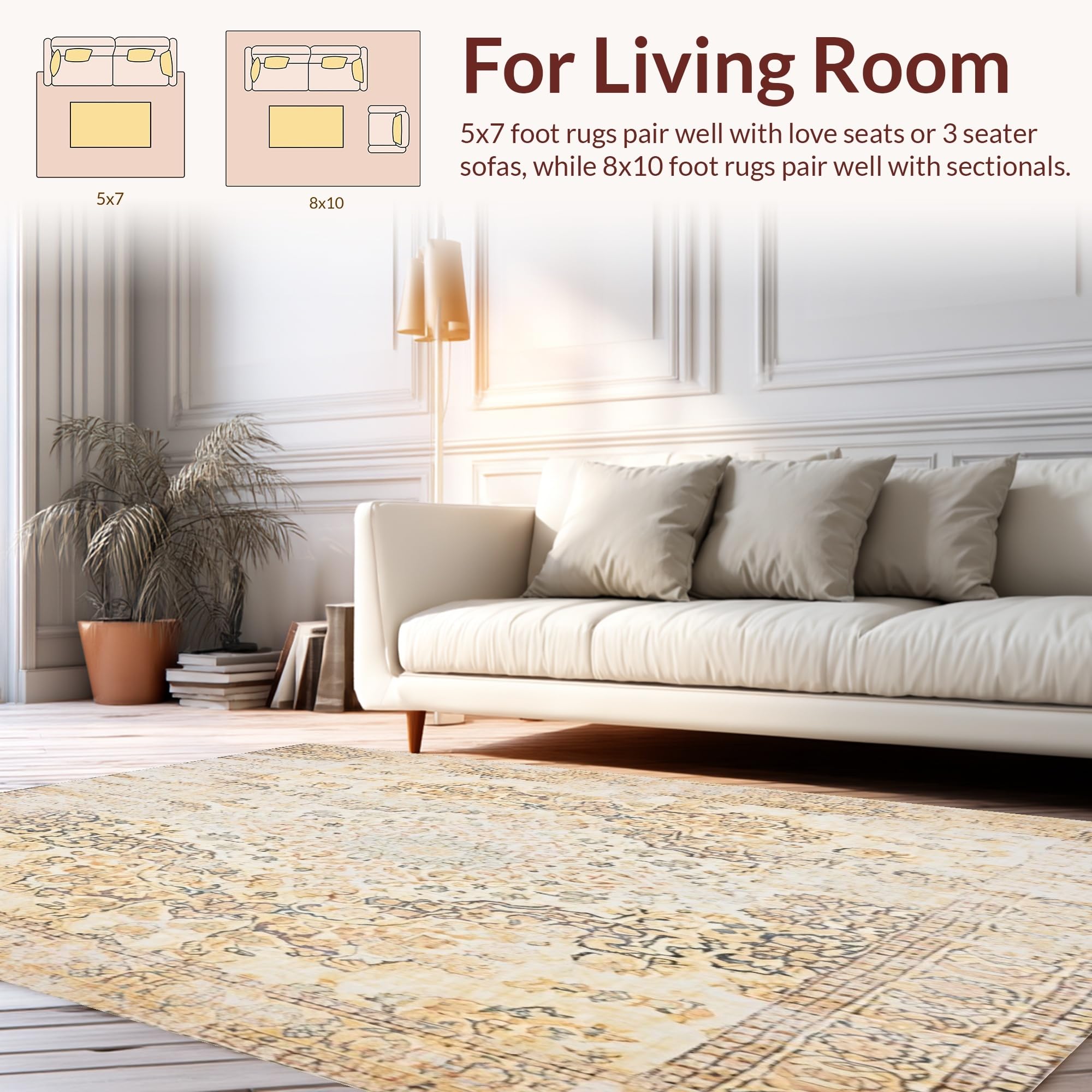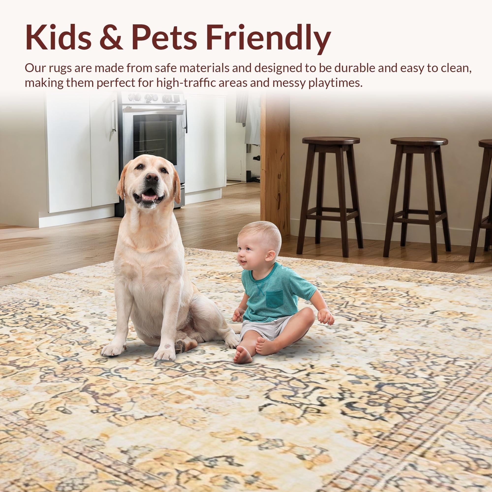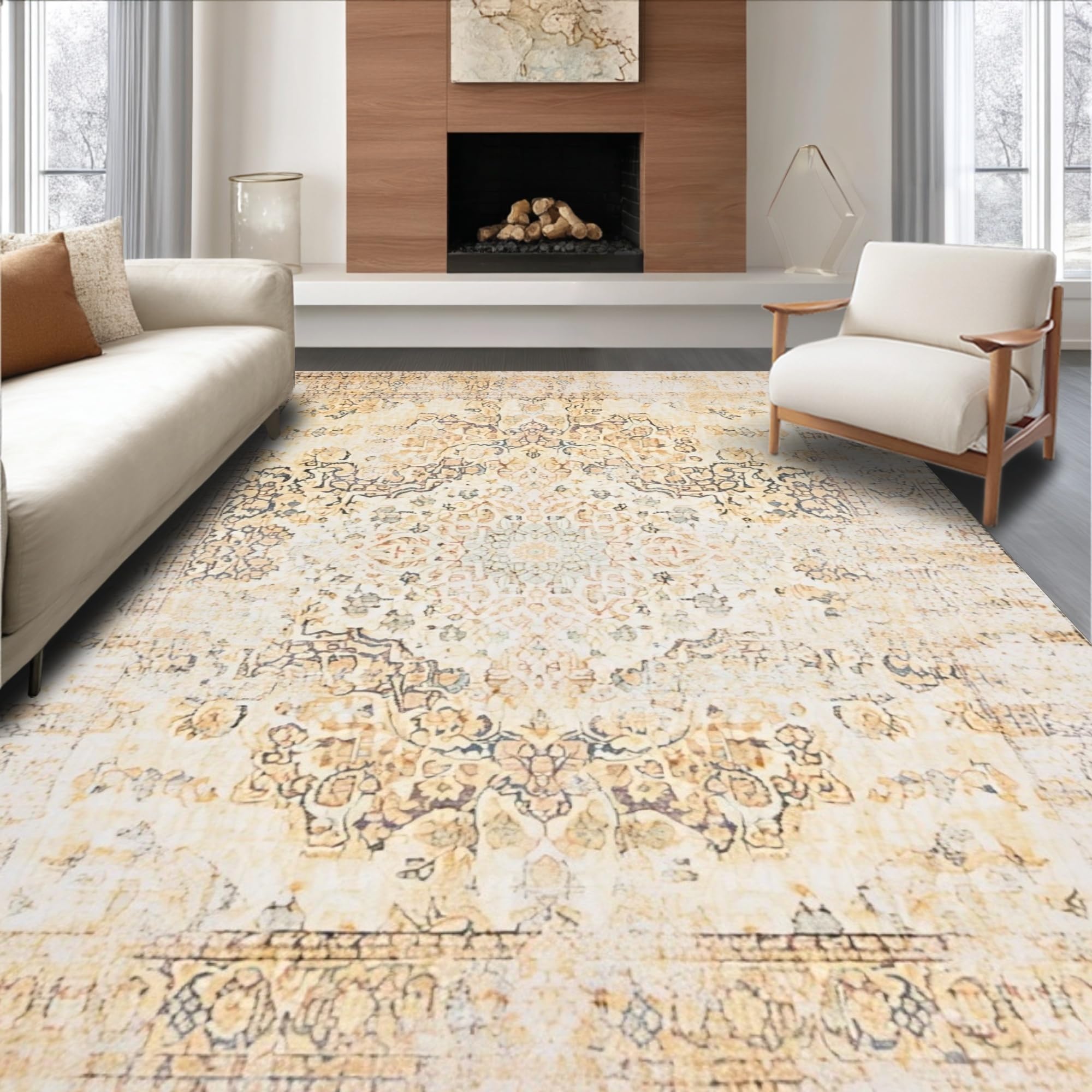 Ultra Soft Area Rug, Non Slip, Stain Resistant, Washable Area Rugs for Living Room, Bedroom, Neutral Large Beige Brown Faded Medallion Design Area(Beige) Overview: