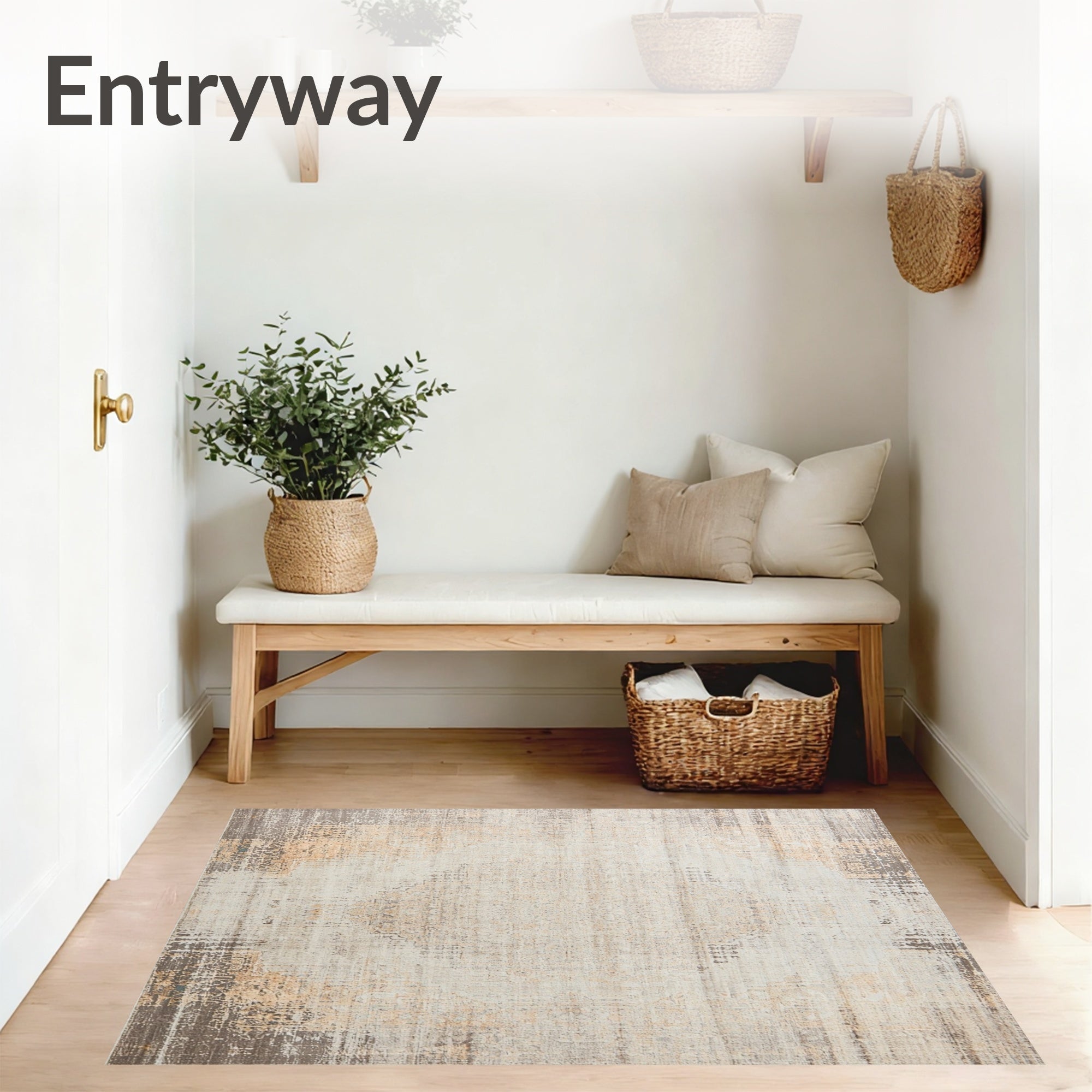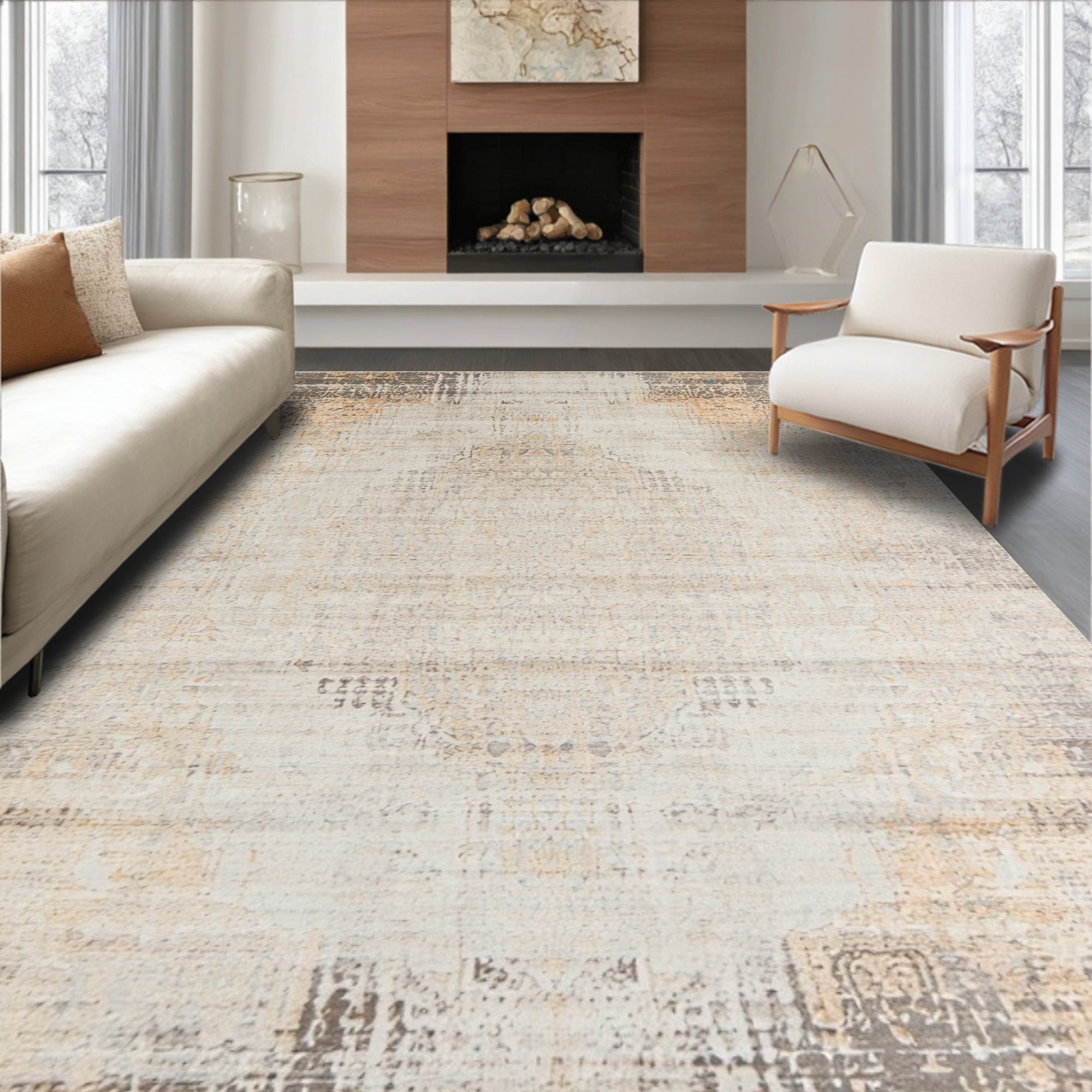 Ultra Soft Area Rug, Non Slip, Stain Resistant, Washable Area Rugs for Living Room, Bedroom, Neutral Legacy Muted Elegant Distressed Non Slip(Beige) Overview: