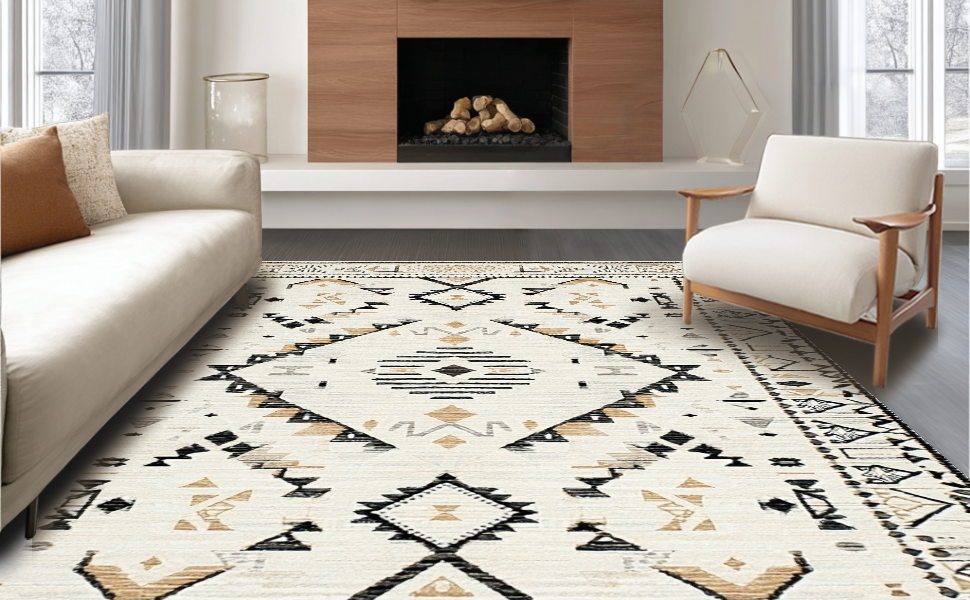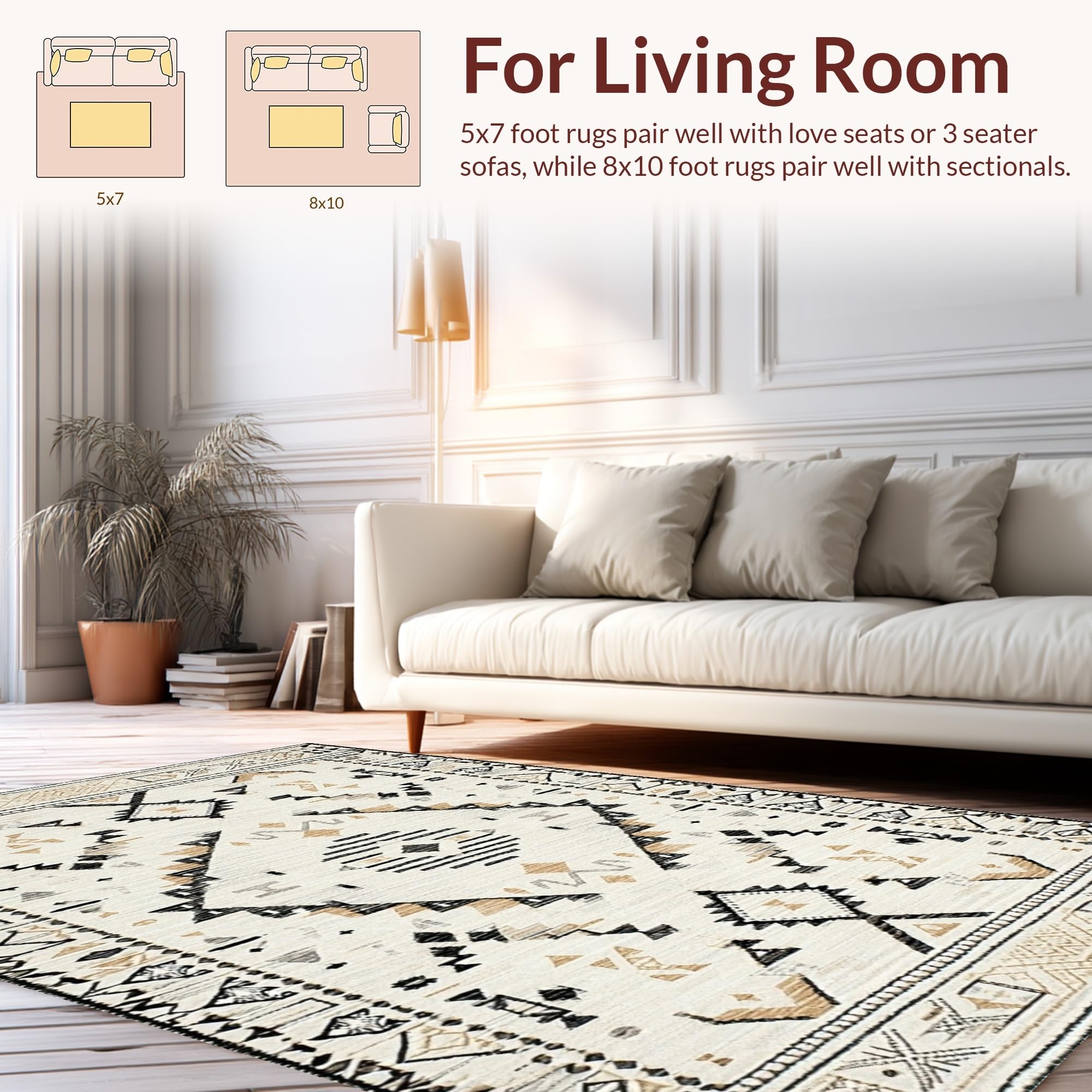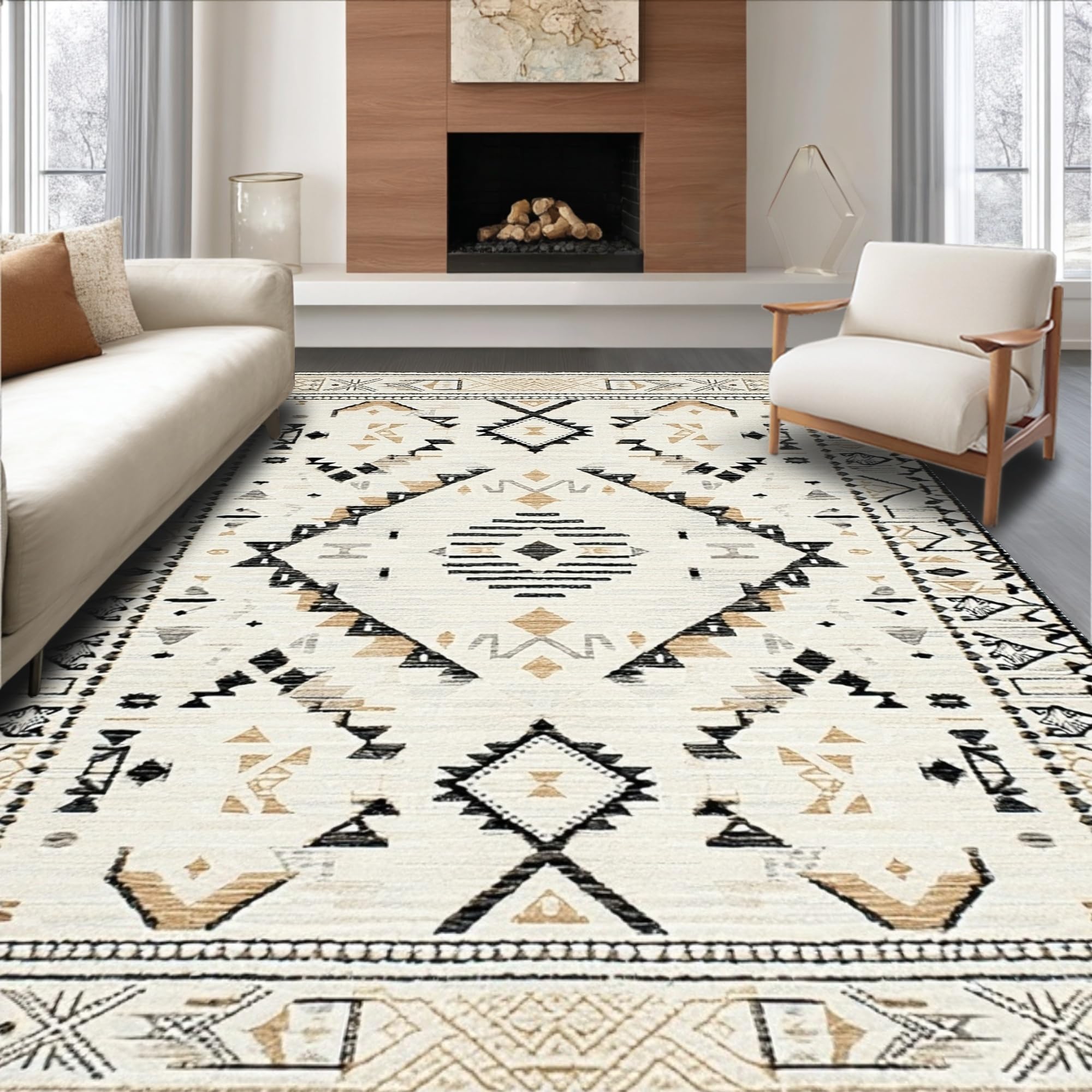 Ultra Soft Area Rug, Non Slip, Stain Resistant, Washable Area Rugs for Living Room, Bedroom, Neutral Textured Diamond Motif(Beige) Overview: