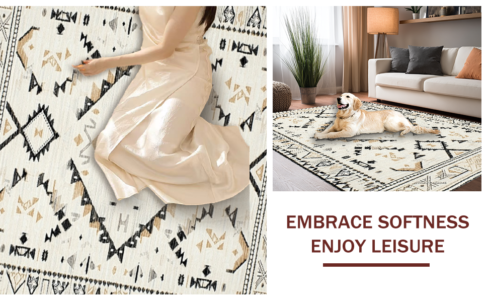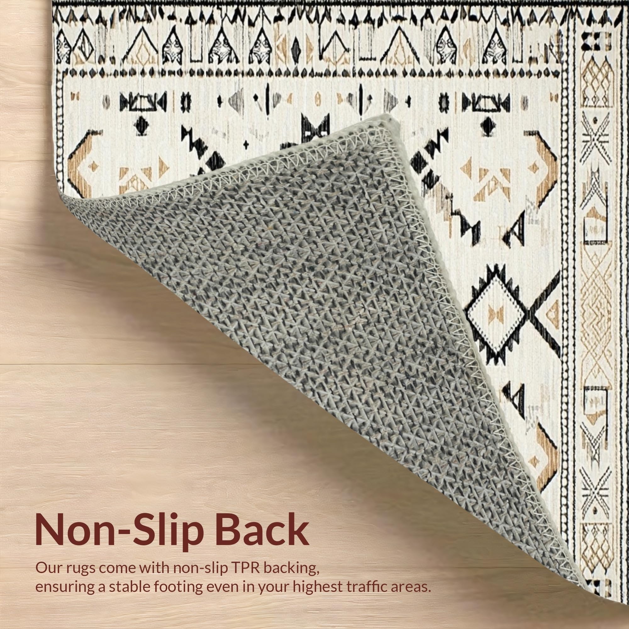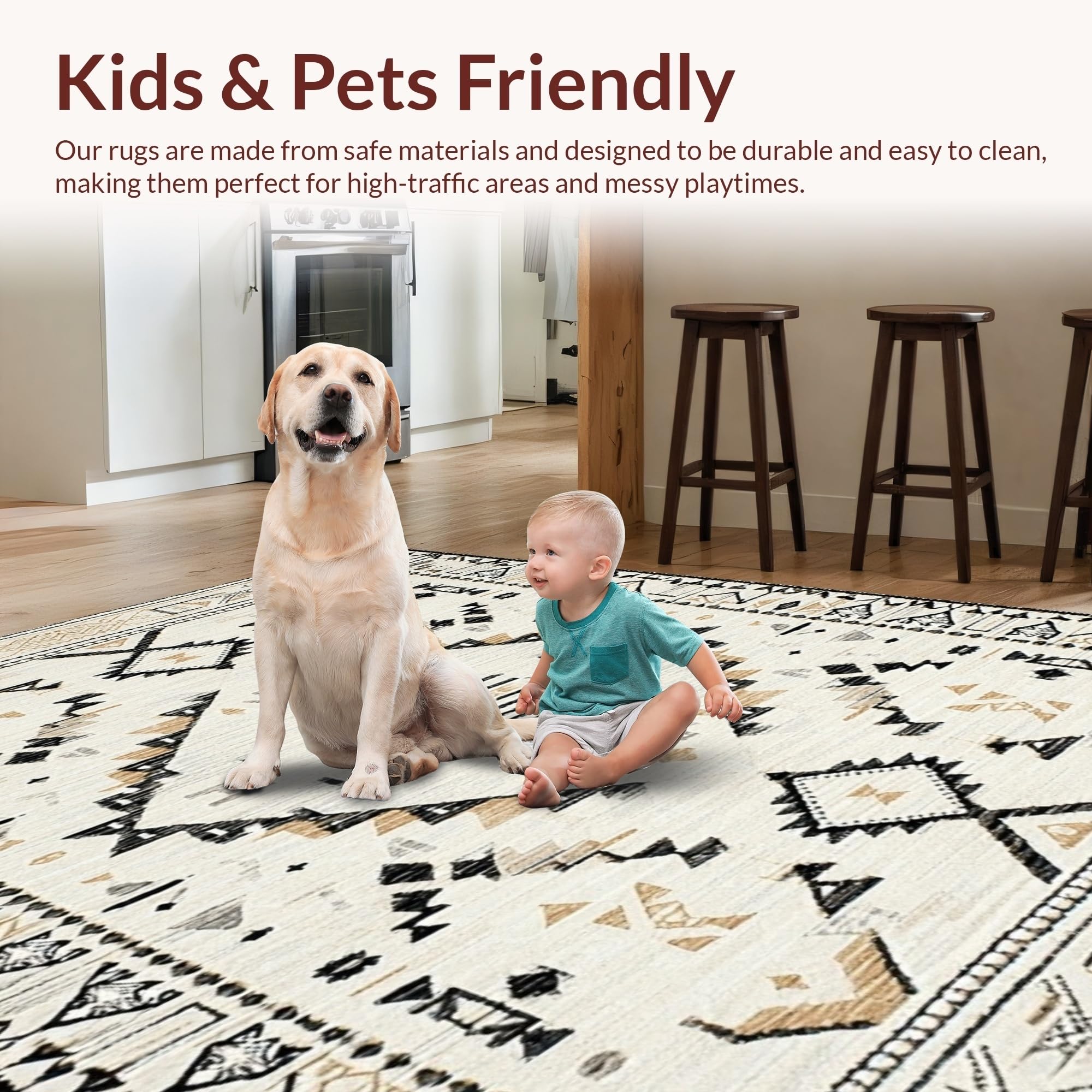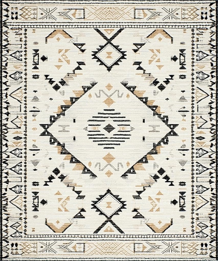 Ultra Soft Area Rug, Non Slip, Stain Resistant, Washable Area Rugs for Living Room, Bedroom, Neutral Textured Diamond Motif(Beige) Overview: