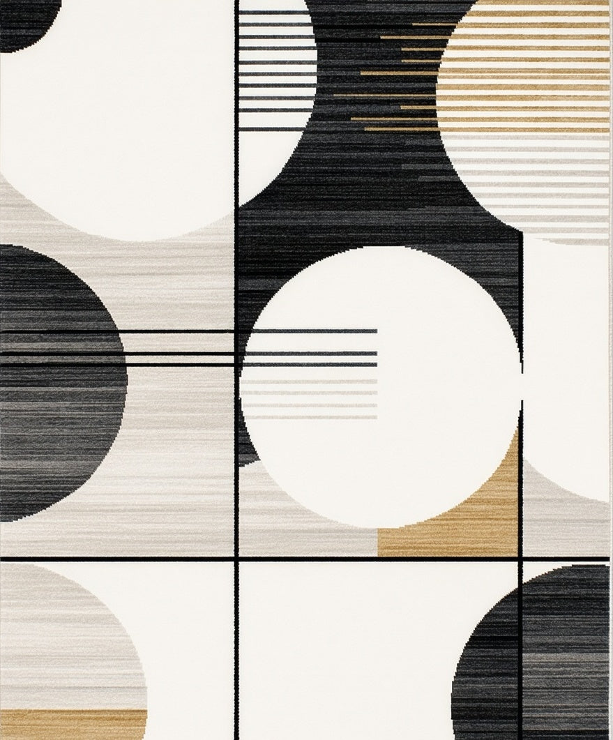 Ultra Soft Area Rug, Non Slip, Stain Resistant, Washable Area Rugs for Living Room, Bedroom, Neutral Toned Modern Area Featuring Geometric Circles and Linear Stripes(Gray) Overview: