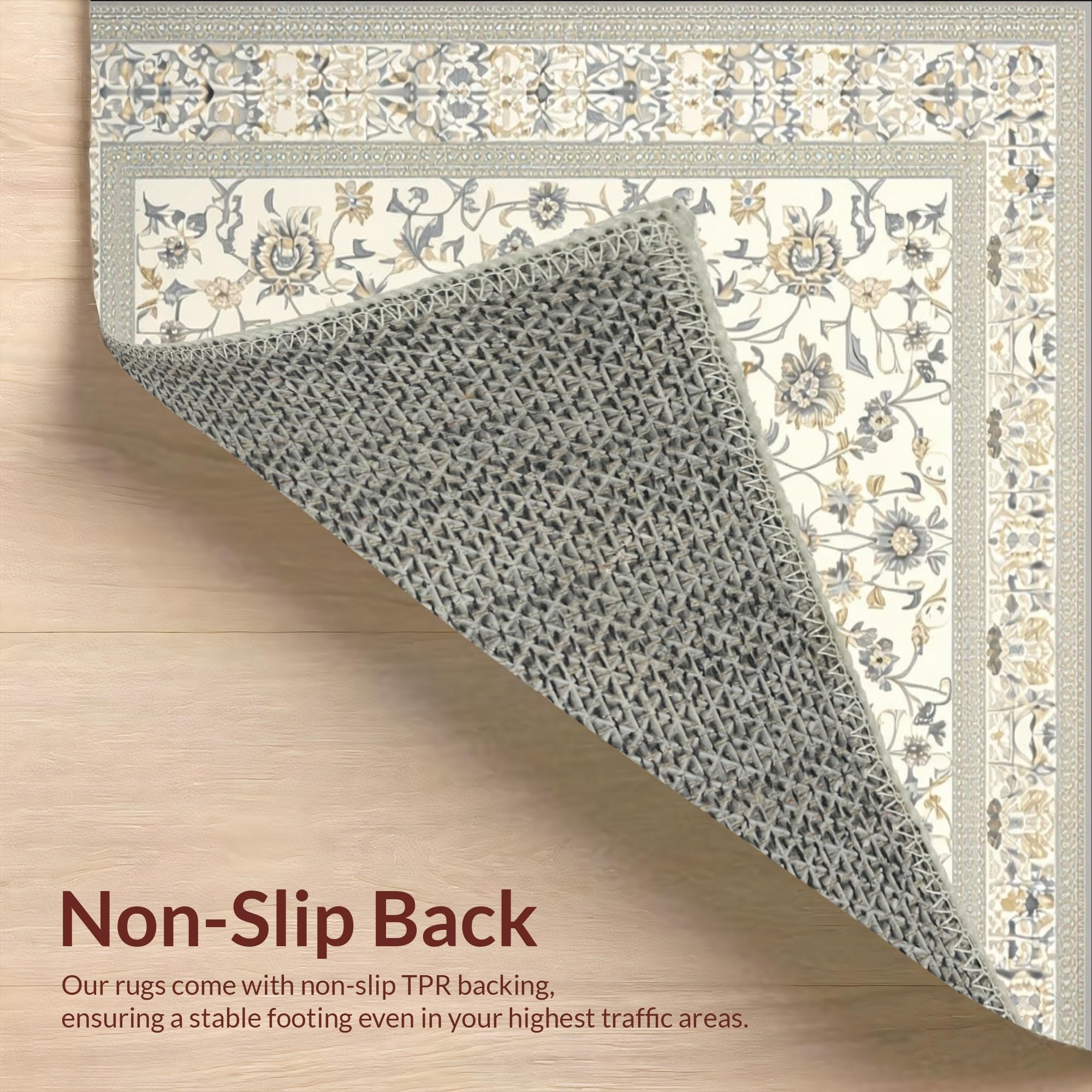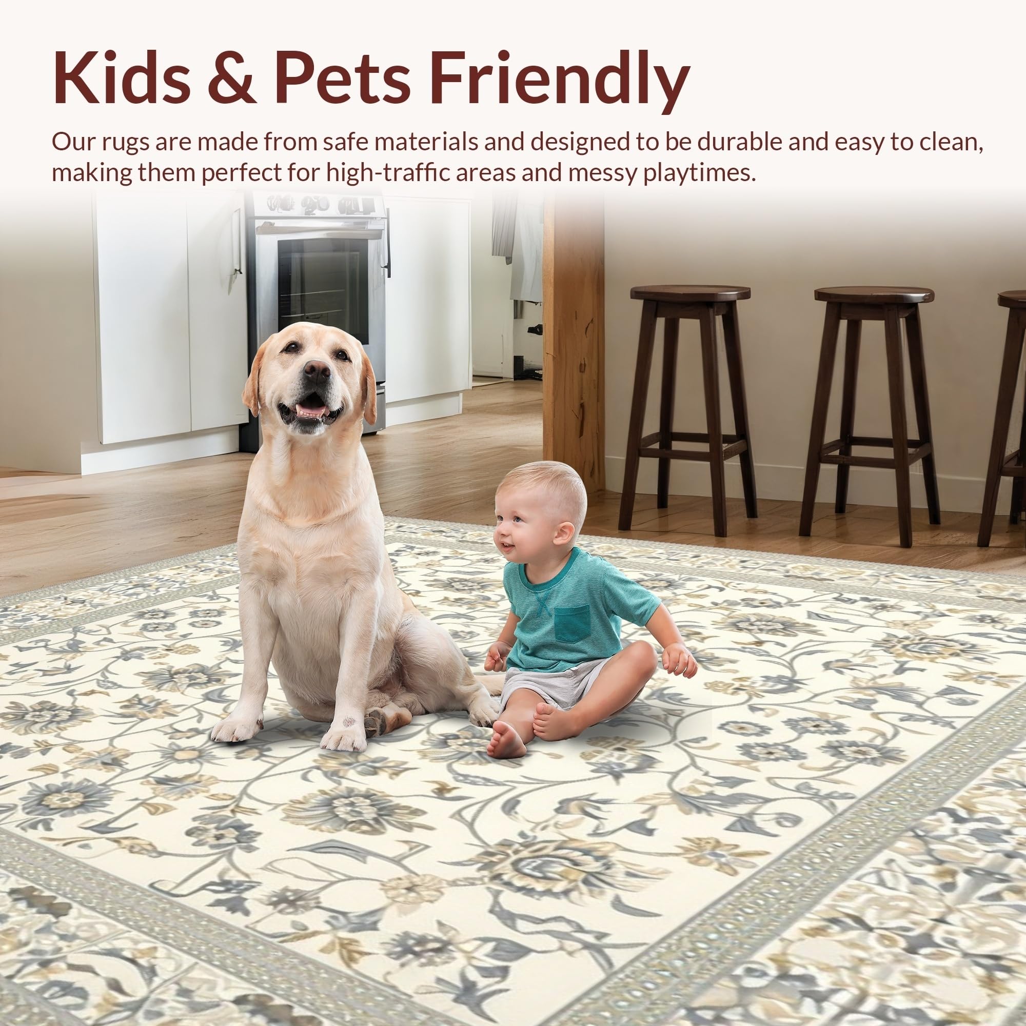 Ultra Soft Area Rug, Non Slip, Stain Resistant, Washable Area Rugs for Living Room, Bedroom, Neutral with Floral Accents(Beige) Overview: