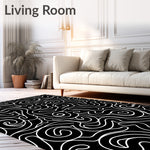 Flatwoven High Traffic Area Rug, Nimbus Swirl Contemporary Abstract Artistic Expression, Non Slip, Stain Resistant, Washable Area Rugs for Living Room, Bedroom (Black) Overview: