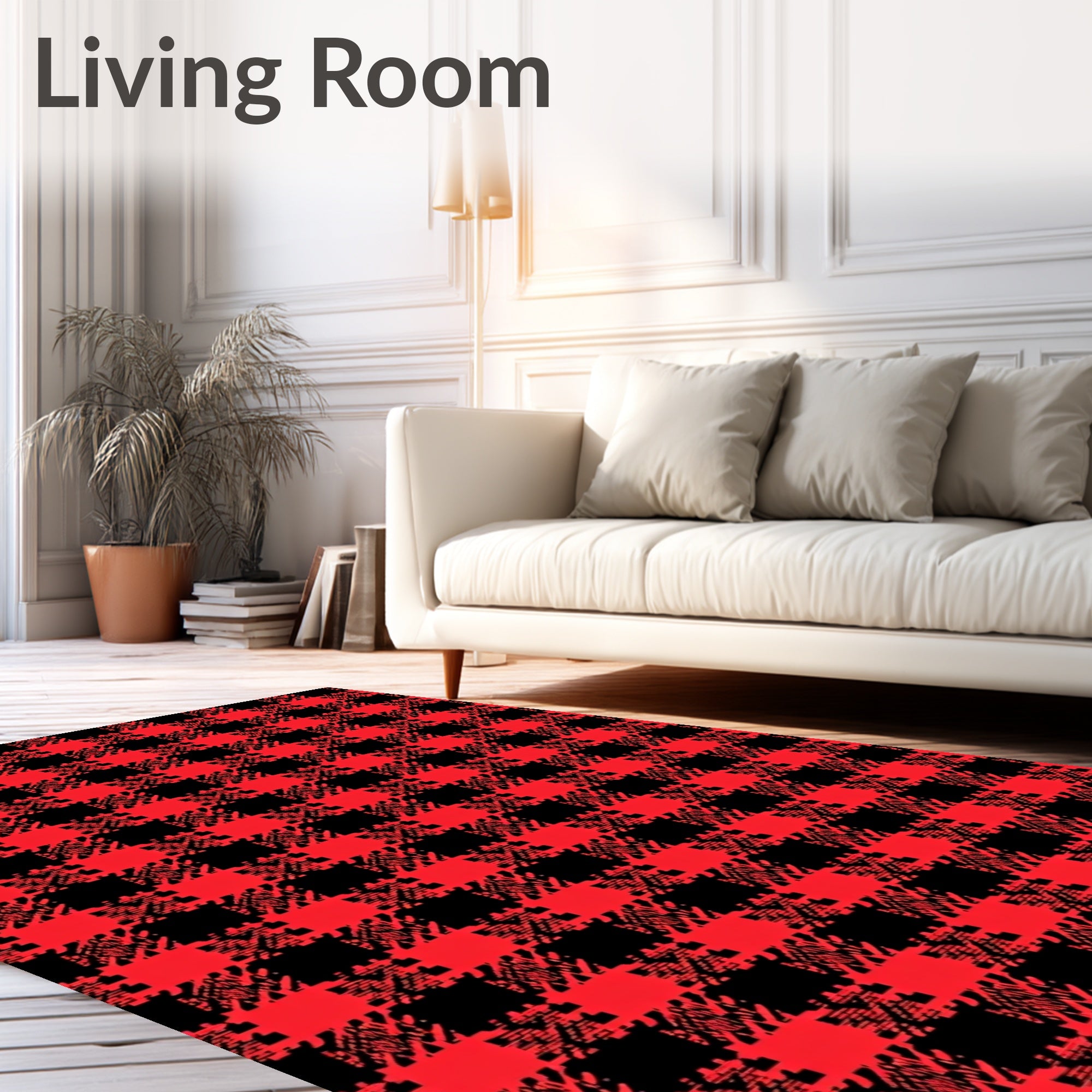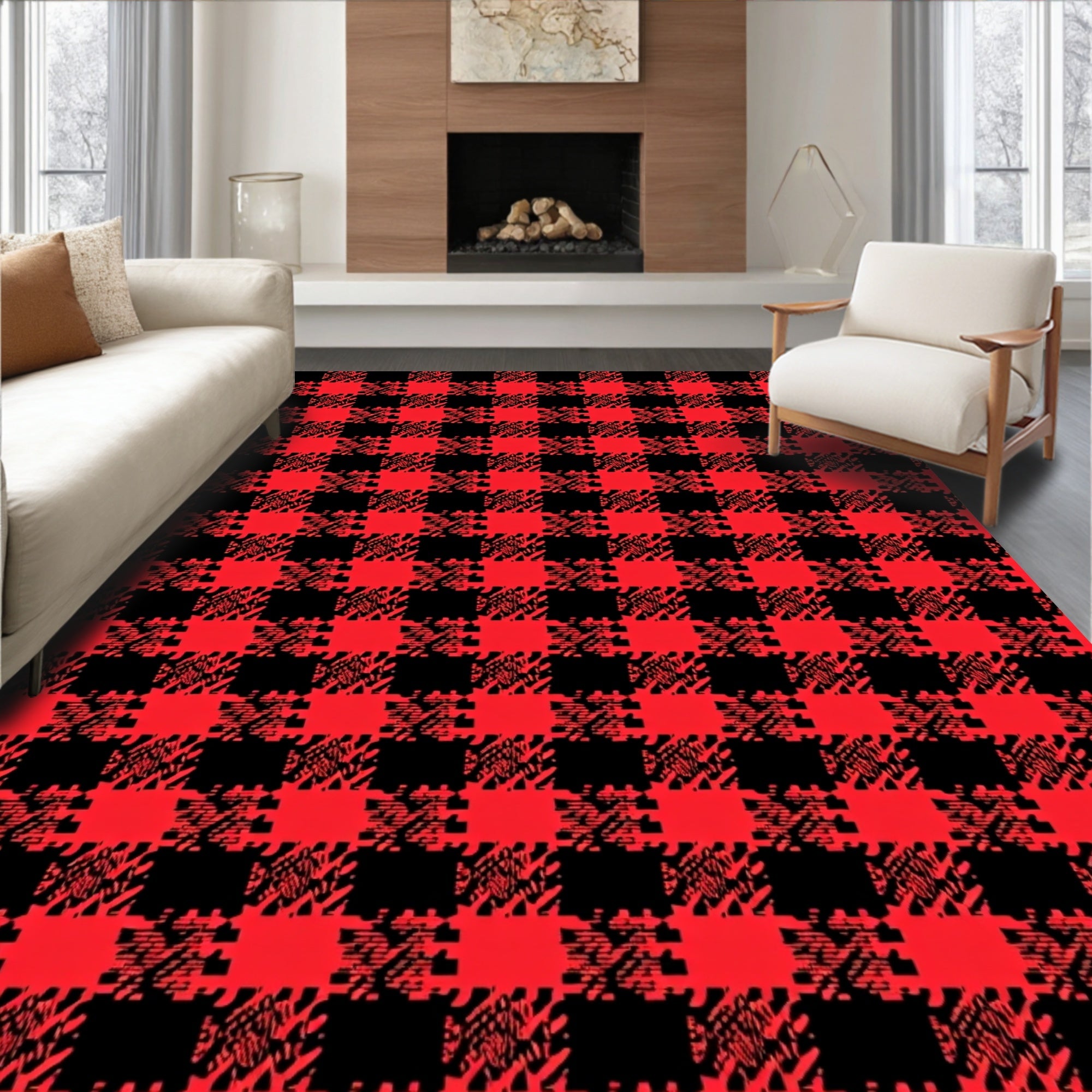 Ultra Soft Area Rug, Non Slip, Stain Resistant, Washable Area Rugs for Living Room, Bedroom, Noel Cabin Lumberjack Flannel Inspired(Red) Overview:
