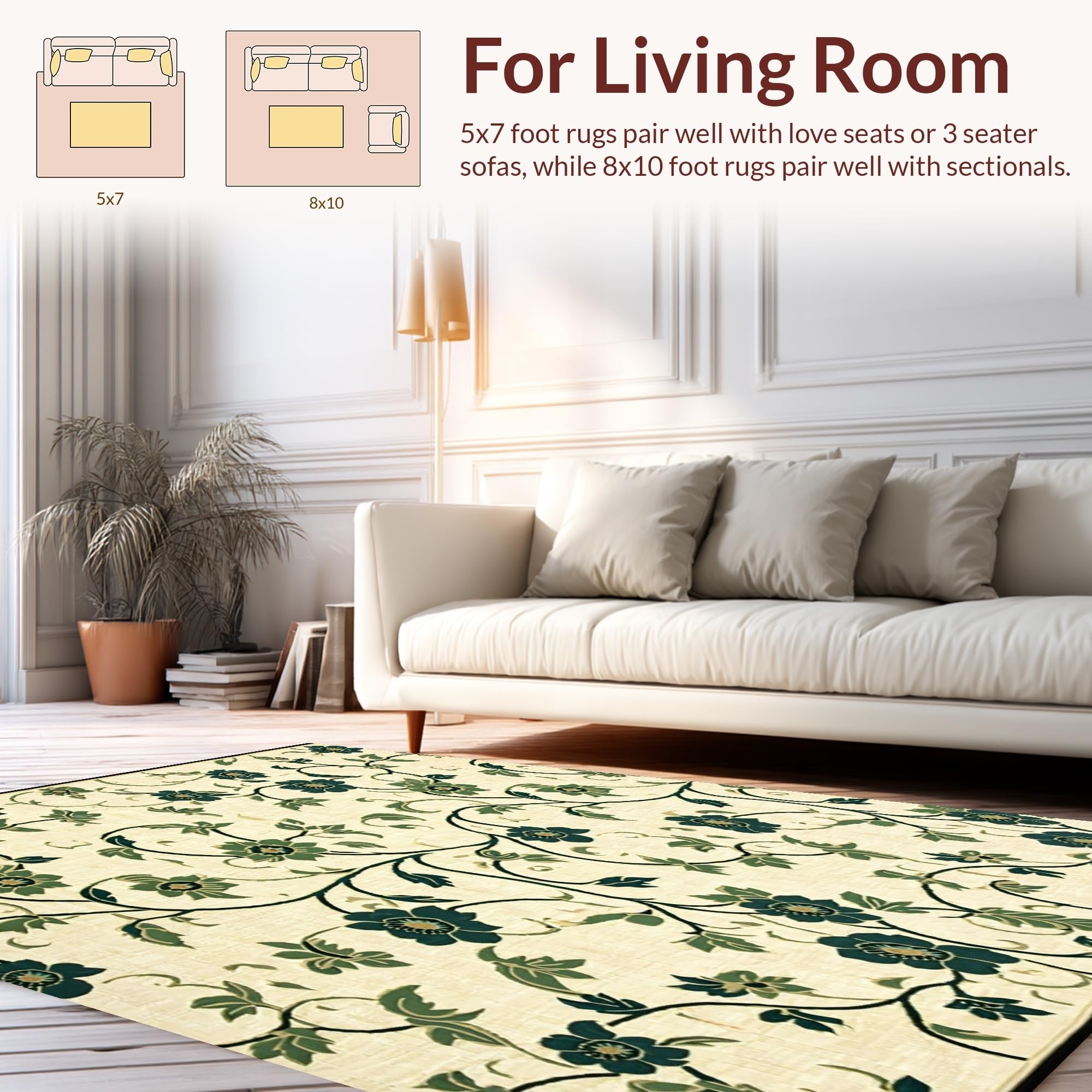 Ultra Soft Area Rug, Non Slip, Stain Resistant, Washable Area Rugs for Living Room, Bedroom, Non Slip Small Area Featuring Beige Base with Green Abstract Floral Motifs(Beige) Overview: