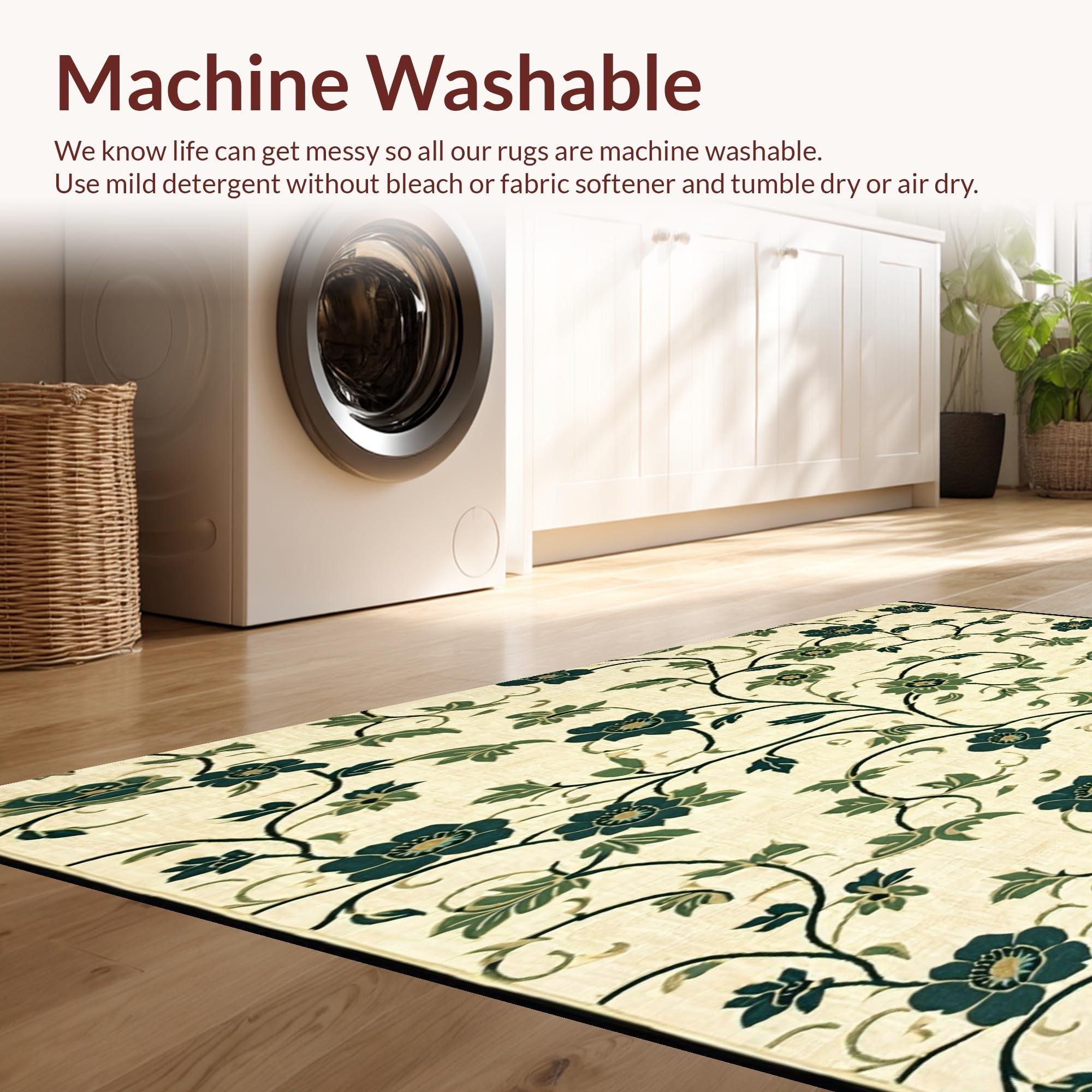 - Machine Washable: Our rugs can be easily thrown in the wash machine.