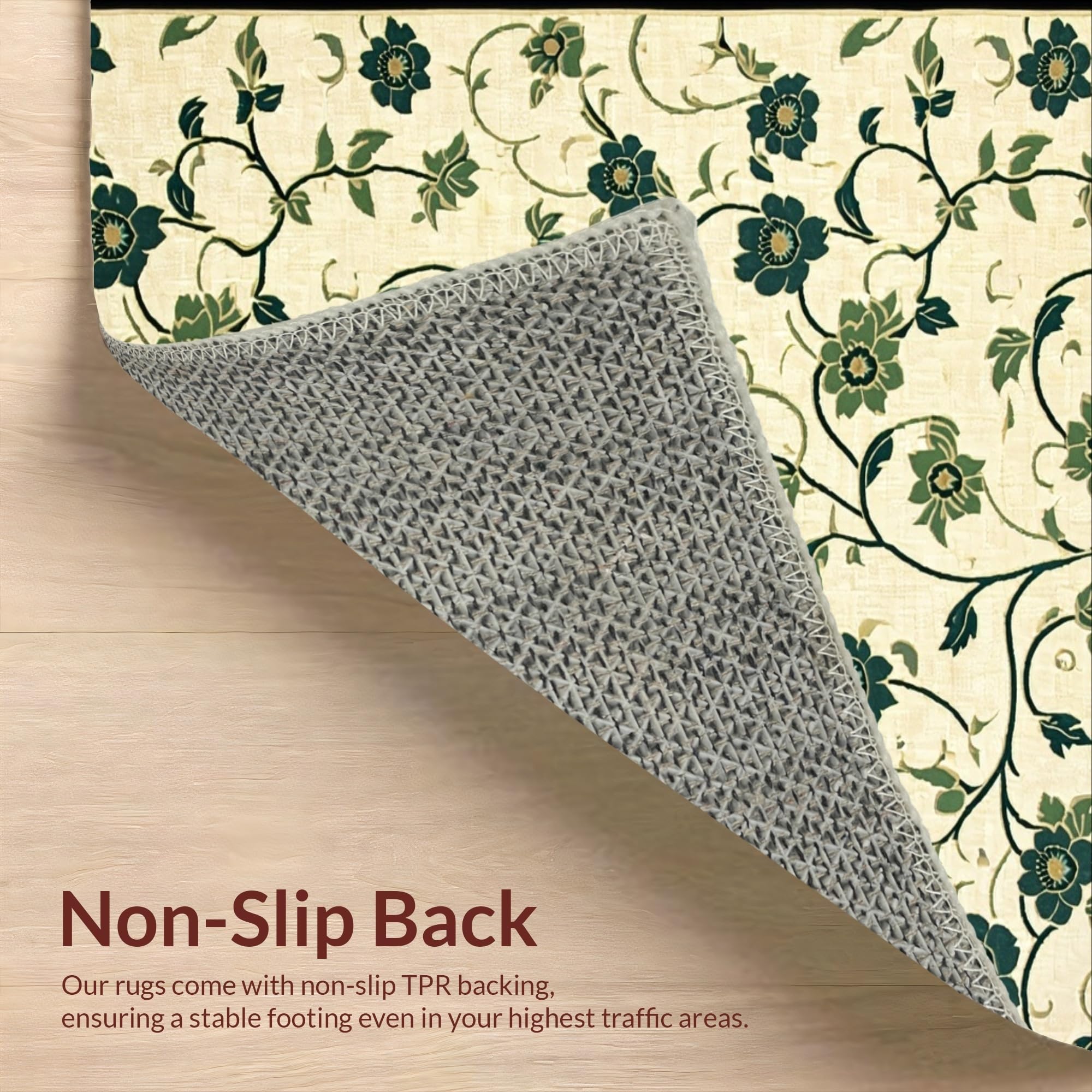 Non Slip Small Area Featuring Beige Base with Green Abstract Floral Motifs(Beige)