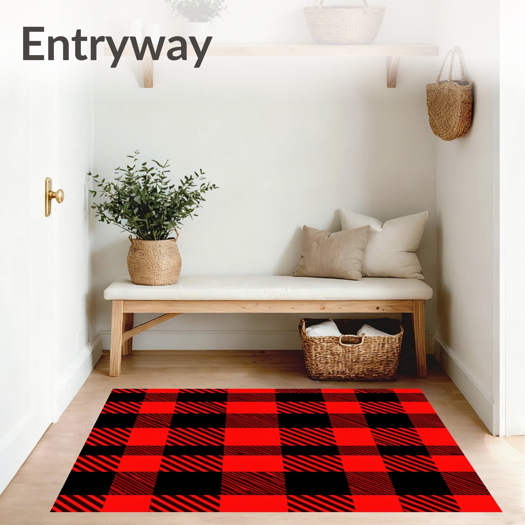 Ultra Soft Area Rug, Non Slip, Stain Resistant, Washable Area Rugs for Living Room, Bedroom, Nordic Checkboard Frosty Wonderland Accent(Red) Overview: