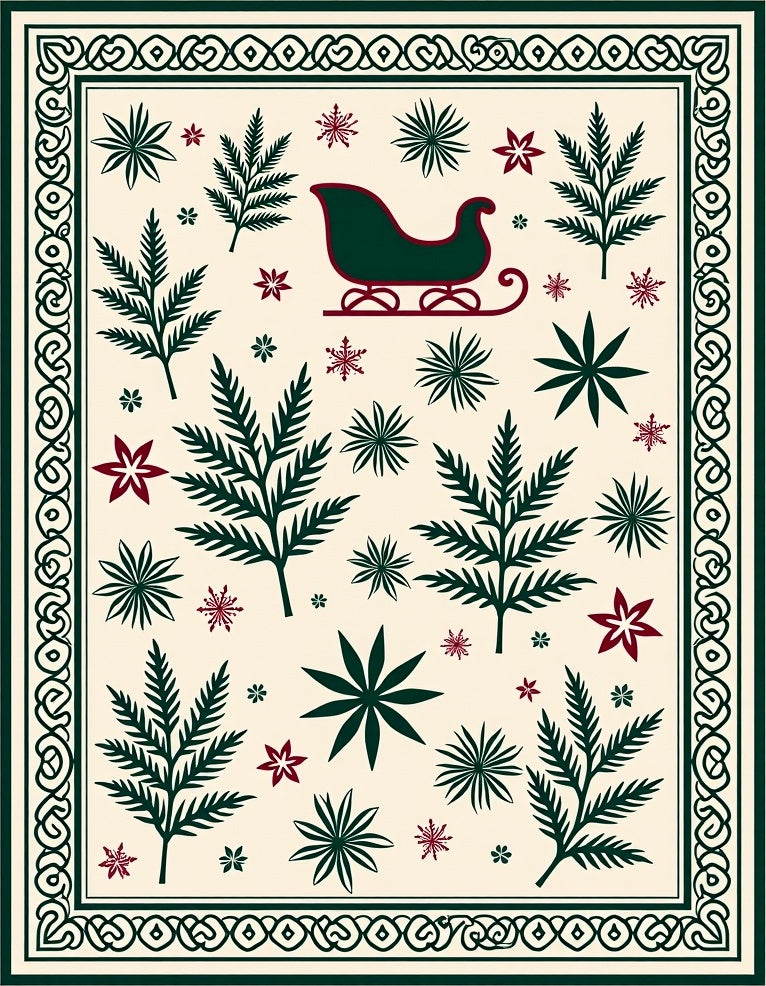 Nordic Fir Branch Sleigh Journey Celebration Design(Ivory)