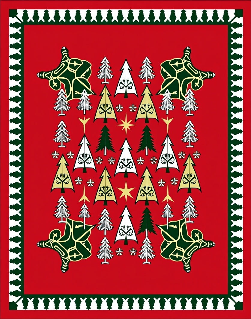 Nordic Fir Tree Motif Holiday Accent Interlocking(Red)