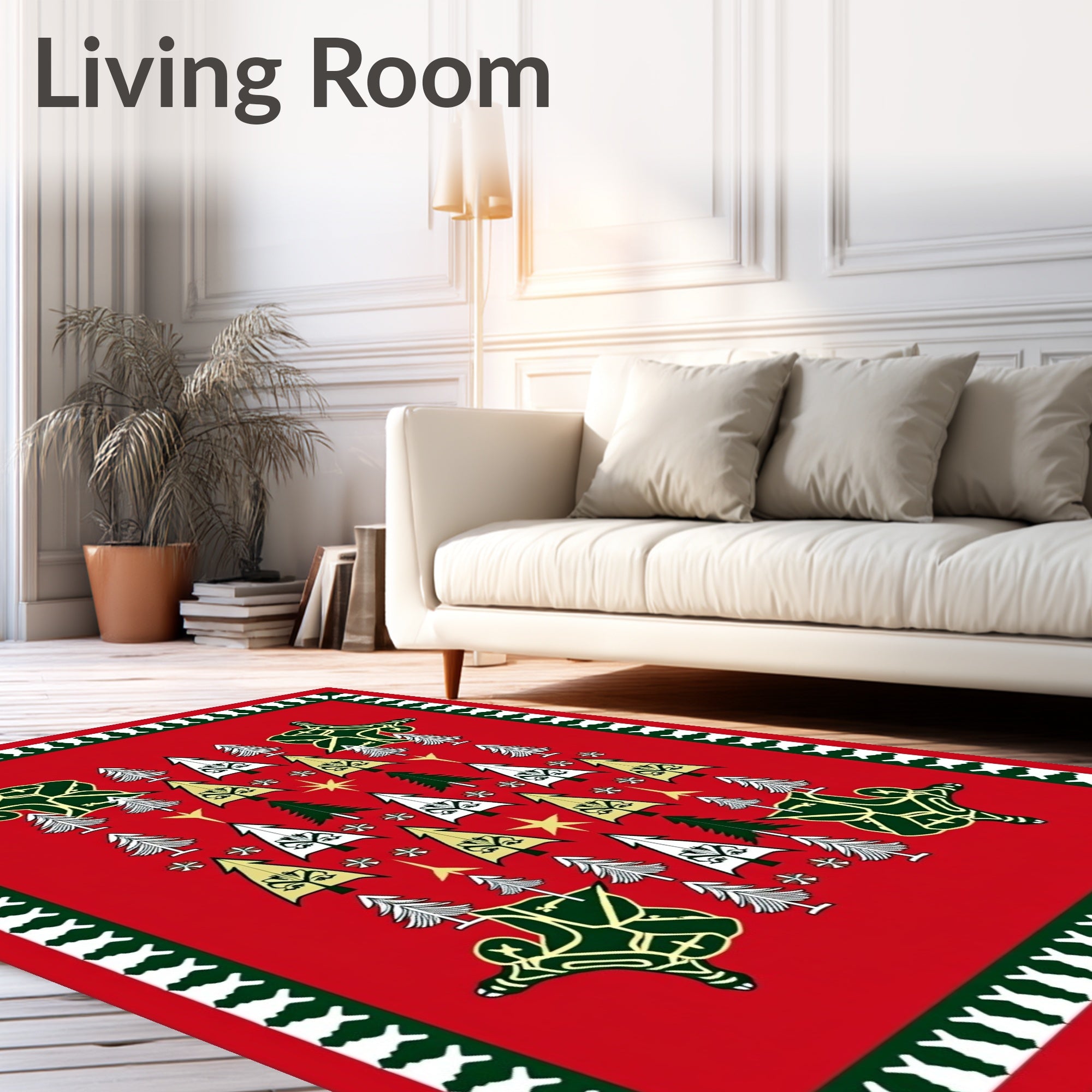 Ultra Soft Area Rug, Non Slip, Stain Resistant, Washable Area Rugs for Living Room, Bedroom, Nordic Fir Tree Motif Holiday Accent Interlocking(Red) Overview: