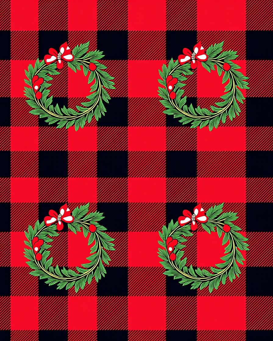 Nordic Inspired Buffalo Check with Festive Wreath Embellishments(Red)