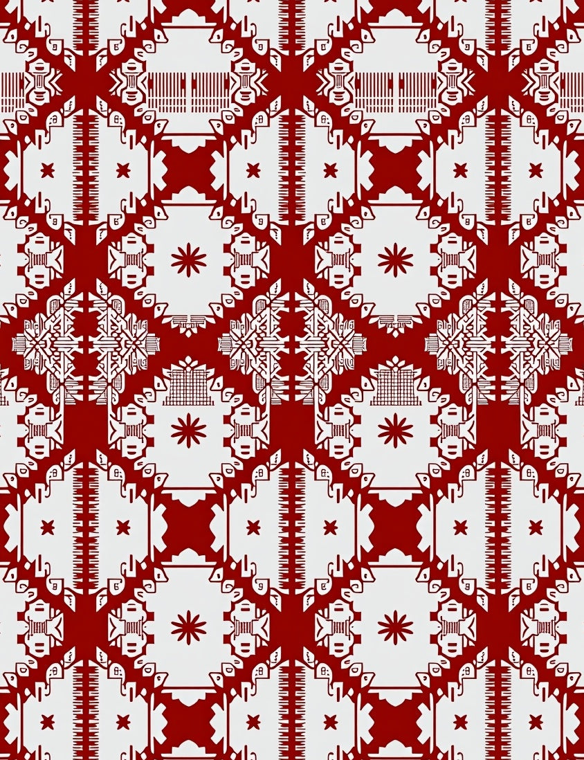 Nordic Inspired Interlocking Plaid with Starburst Detailing(Red)