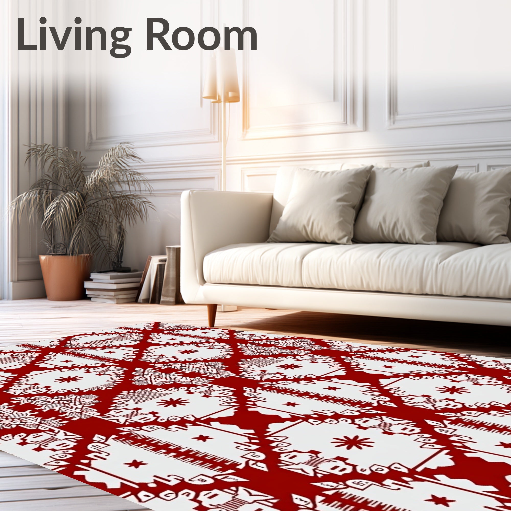 Flatwoven High Traffic Area Rug, Nordic Inspired Interlocking Plaid with Starburst Detailing, Non Slip, Stain Resistant, Washable Area Rugs for Living Room, Bedroom (Red) Overview: