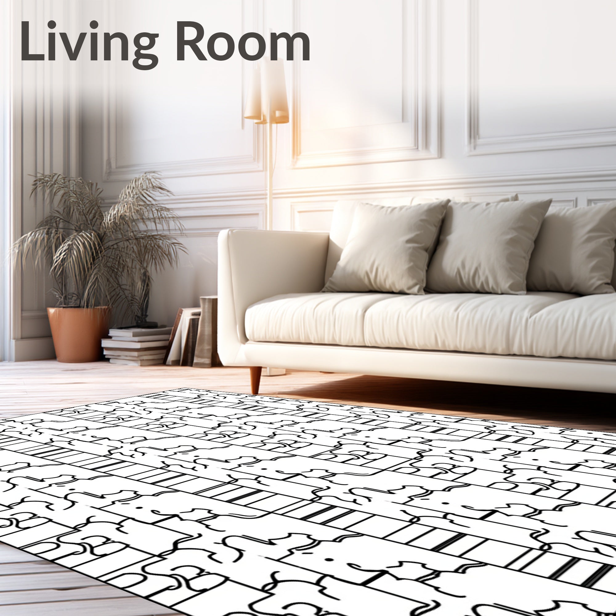 Ultra Soft Area Rug, Non Slip, Stain Resistant, Washable Area Rugs for Living Room, Bedroom, Nordic Interlace Rhythm with Timeless Appeal(Black) Overview: