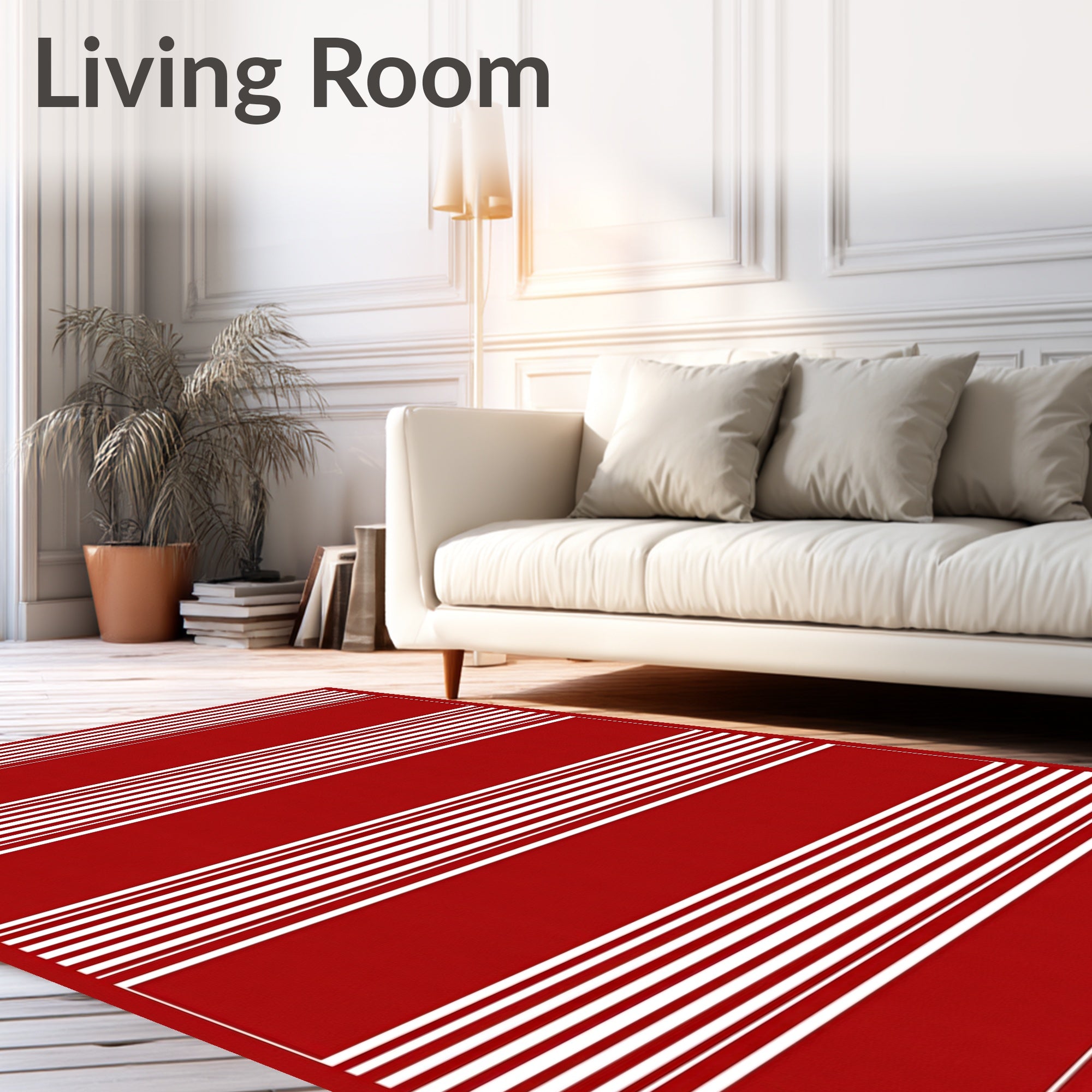 Ultra Soft Area Rug, Non Slip, Stain Resistant, Washable Area Rugs for Living Room, Bedroom, Nordic Jolly Bands Elegant Walkway Trim Merry Decorative(Red) Overview: