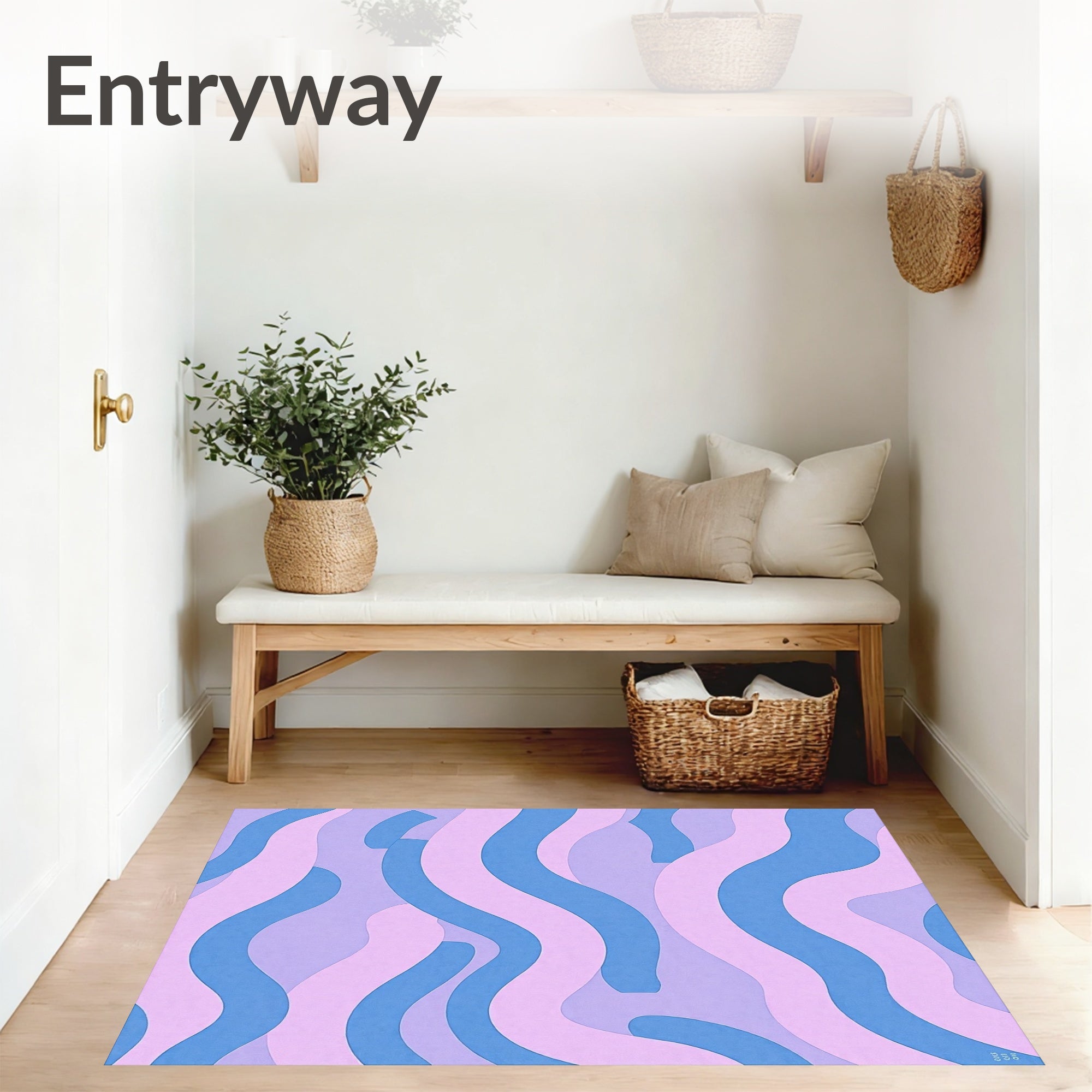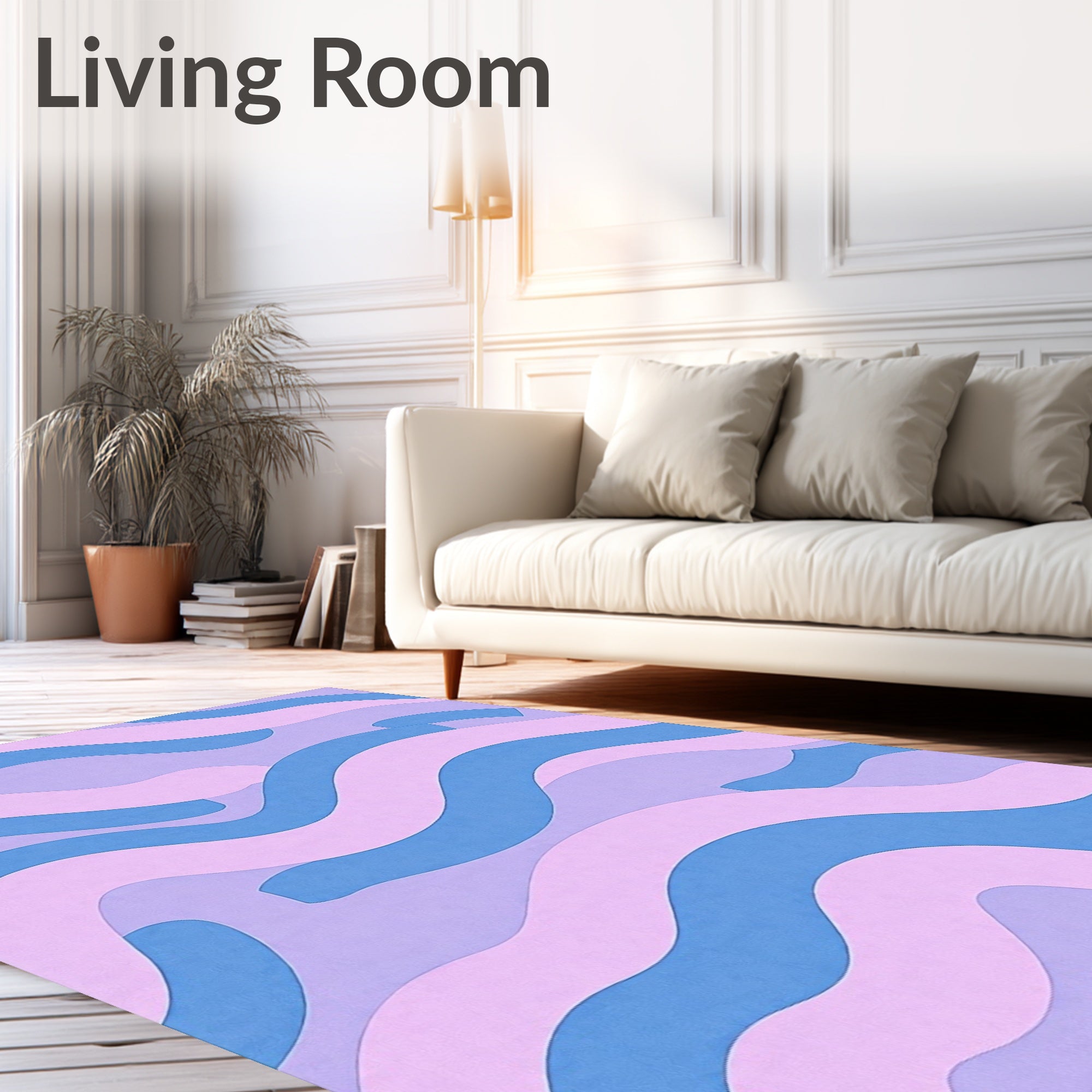 Ultra Soft Area Rug, Non Slip, Stain Resistant, Washable Area Rugs for Living Room, Bedroom, Nordic Mist Abstract Wave(Blue) Overview:
