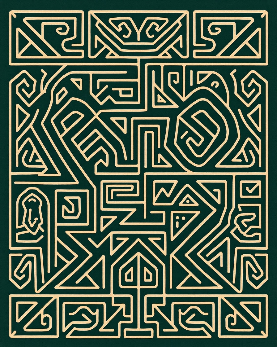 Nordic Modern Interlocking Maze with Abstract Botanical Motifs(Green)