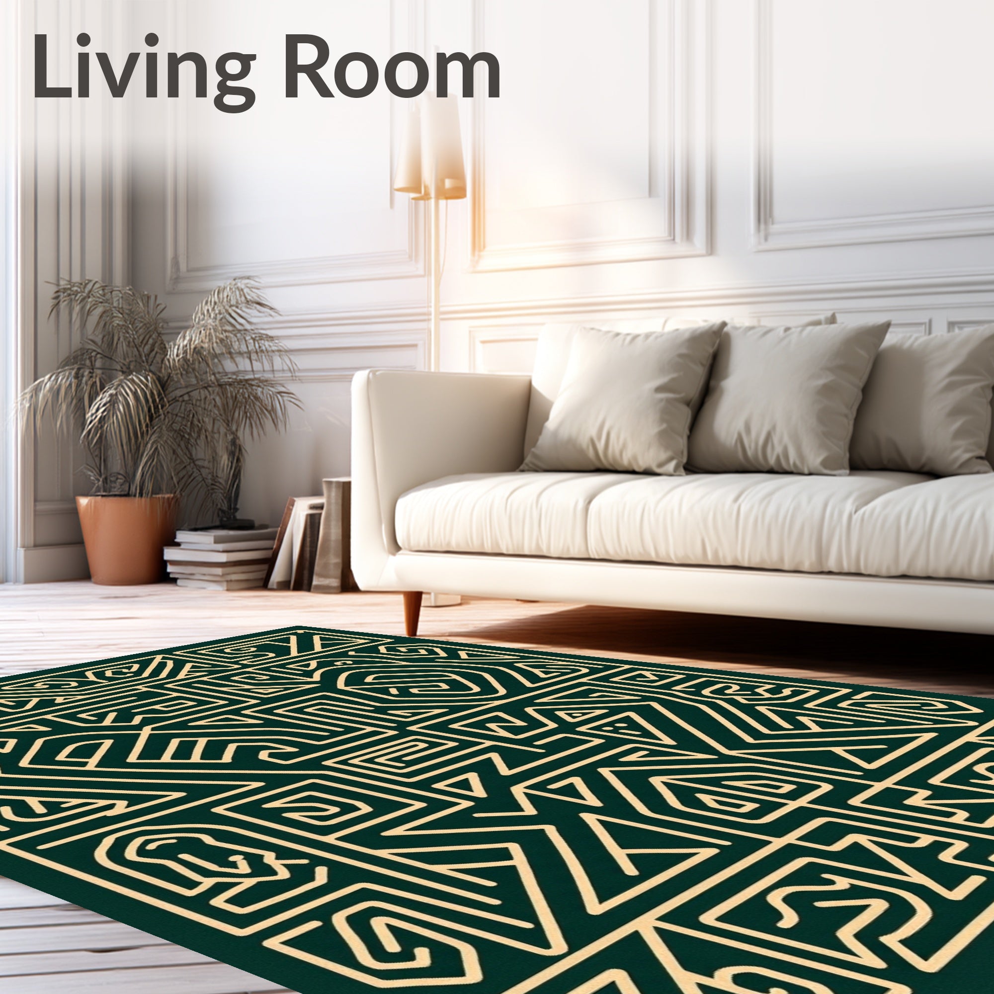 Ultra Soft Area Rug, Non Slip, Stain Resistant, Washable Area Rugs for Living Room, Bedroom, Nordic Modern Interlocking Maze with Abstract Botanical Motifs(Green) Overview: