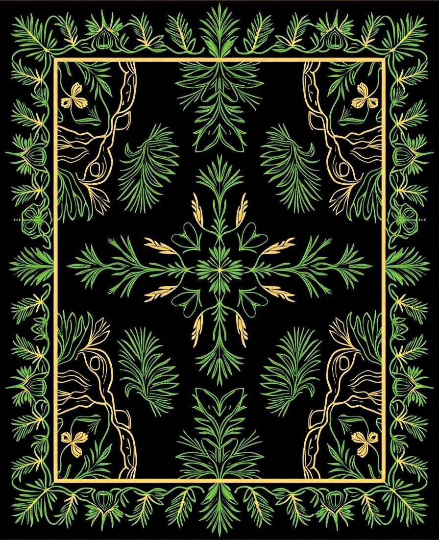 Nordic Pine Branch Interlocking with Festive Filigree Motifs(Black)