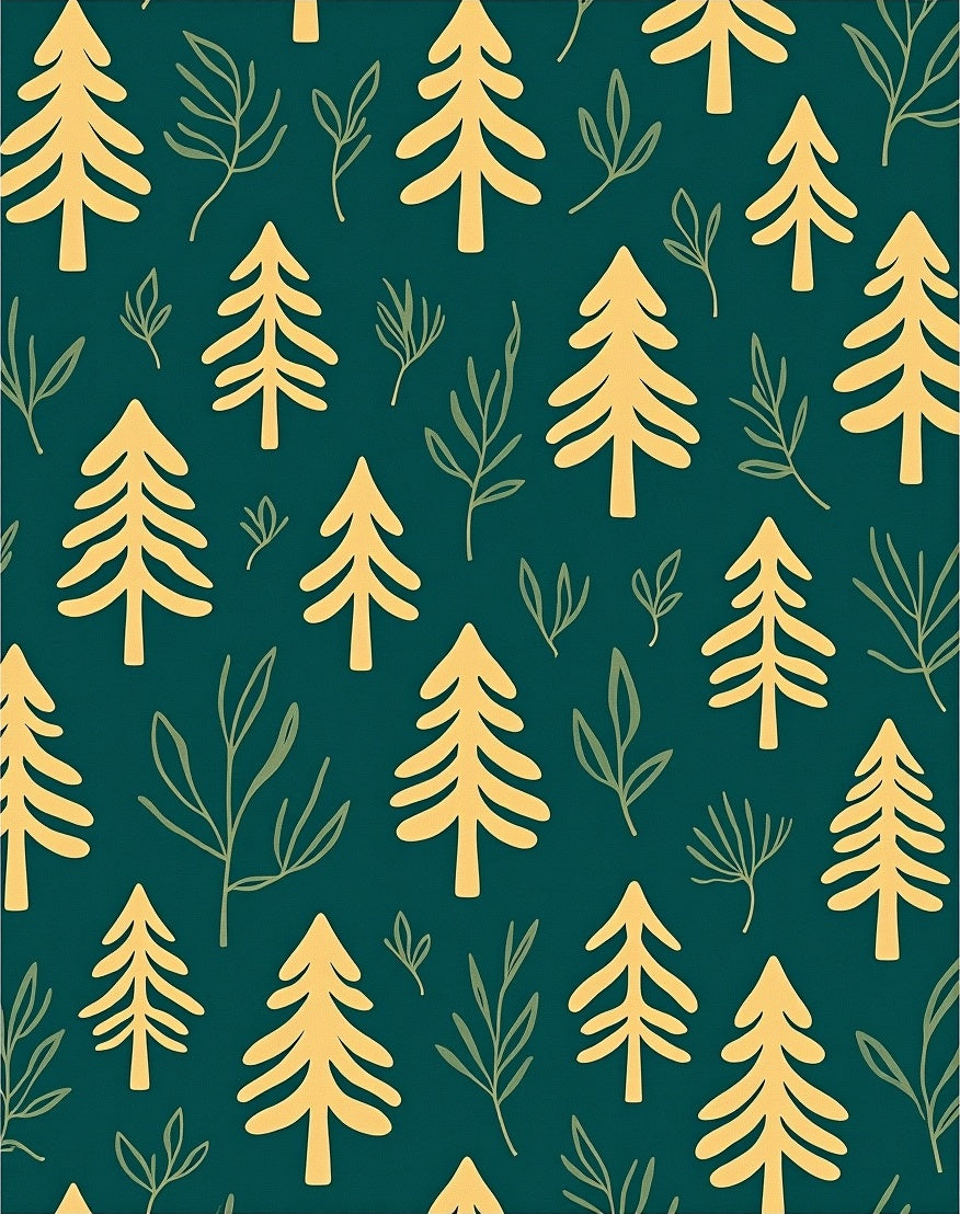 Nordic Pine Forest with Whispering Leaf Motifs(Gold)