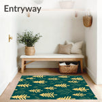 Flatwoven High Traffic Area Rug, Nordic Pine Forest with Whispering Leaf Motifs, Non Slip, Stain Resistant, Washable Area Rugs for Living Room, Bedroom (Gold) Overview: