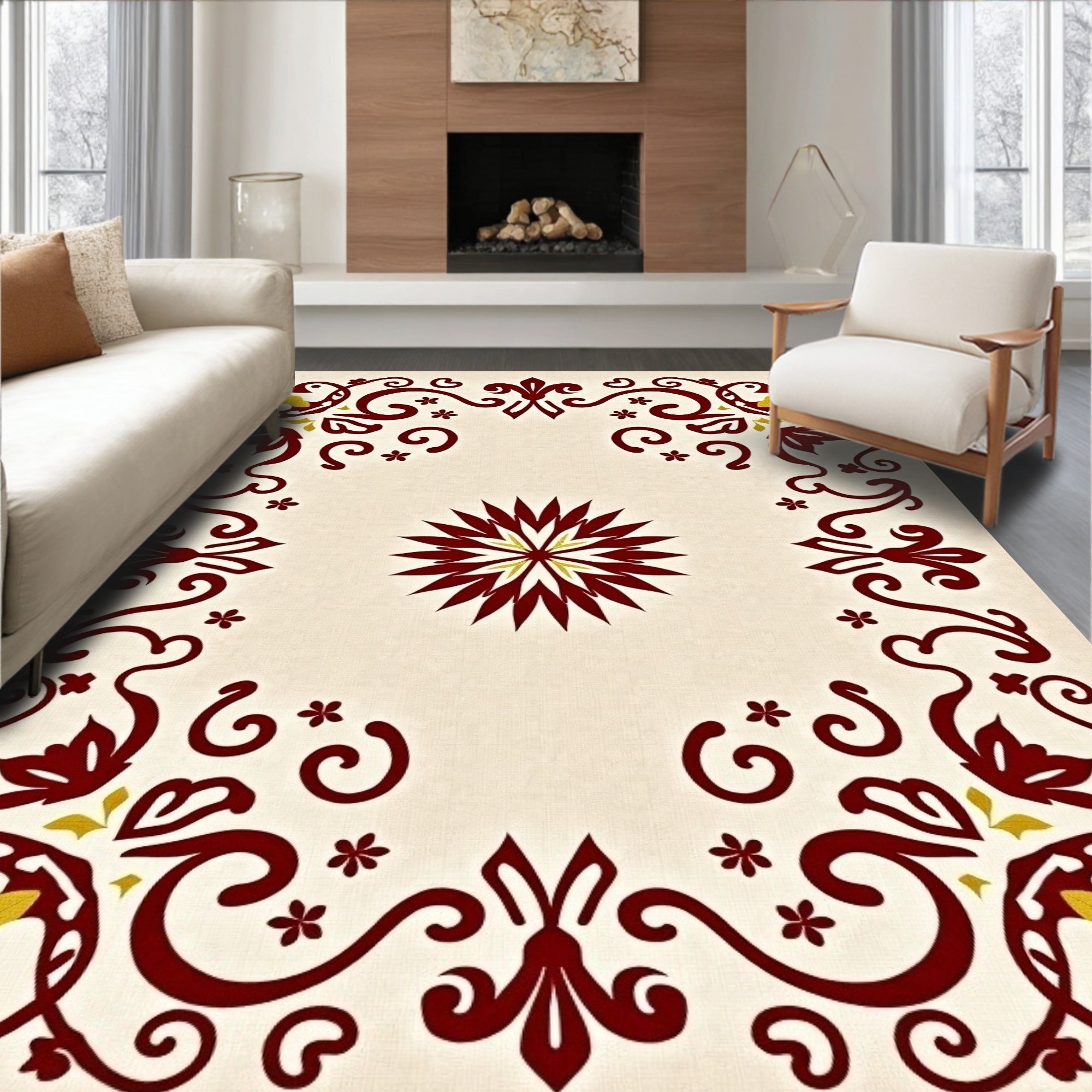 Ultra Soft Area Rug, Non Slip, Stain Resistant, Washable Area Rugs for Living Room, Bedroom, Nordic Pinecone and Ribbon Interlocking Holiday Motif(Ivory) Overview: