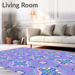 Ultra Soft Area Rug, Non Slip, Stain Resistant, Washable Area Rugs for Living Room, Bedroom, Nordic Snowfall Interlocking Motif(Purple) Overview:
