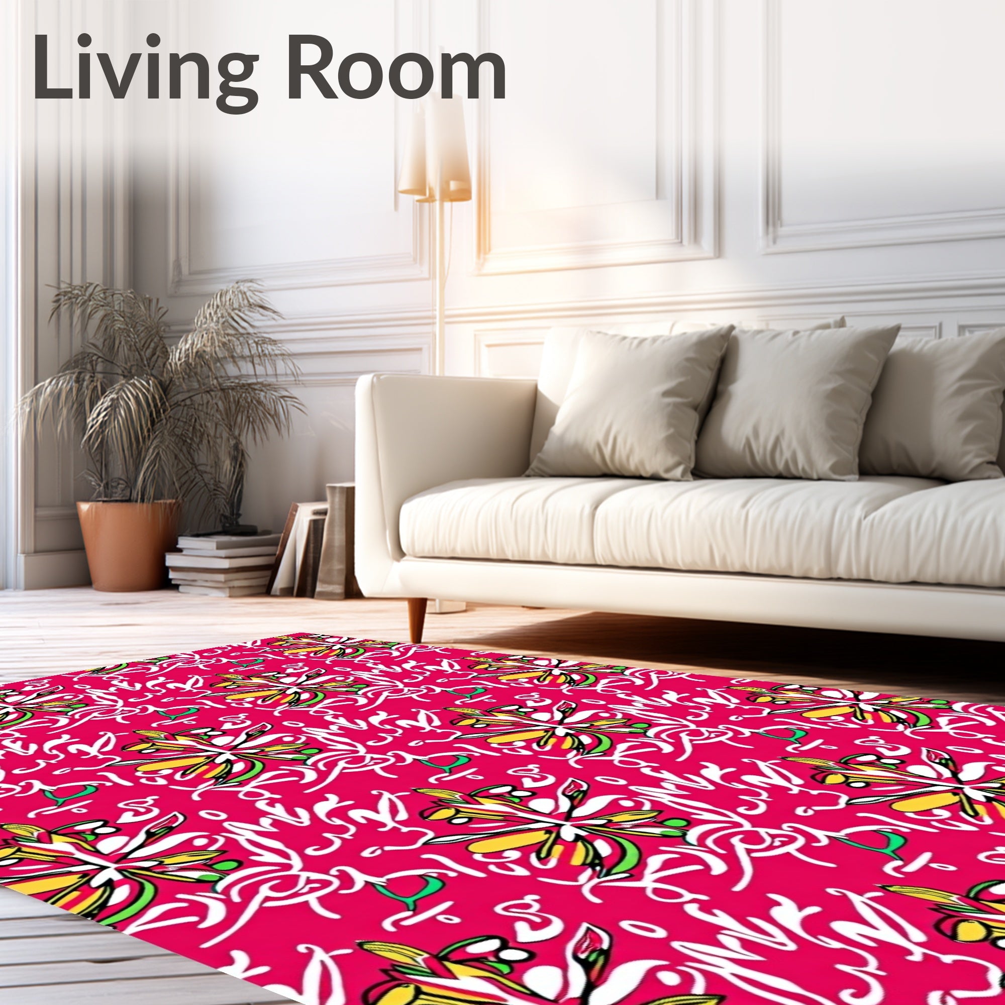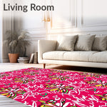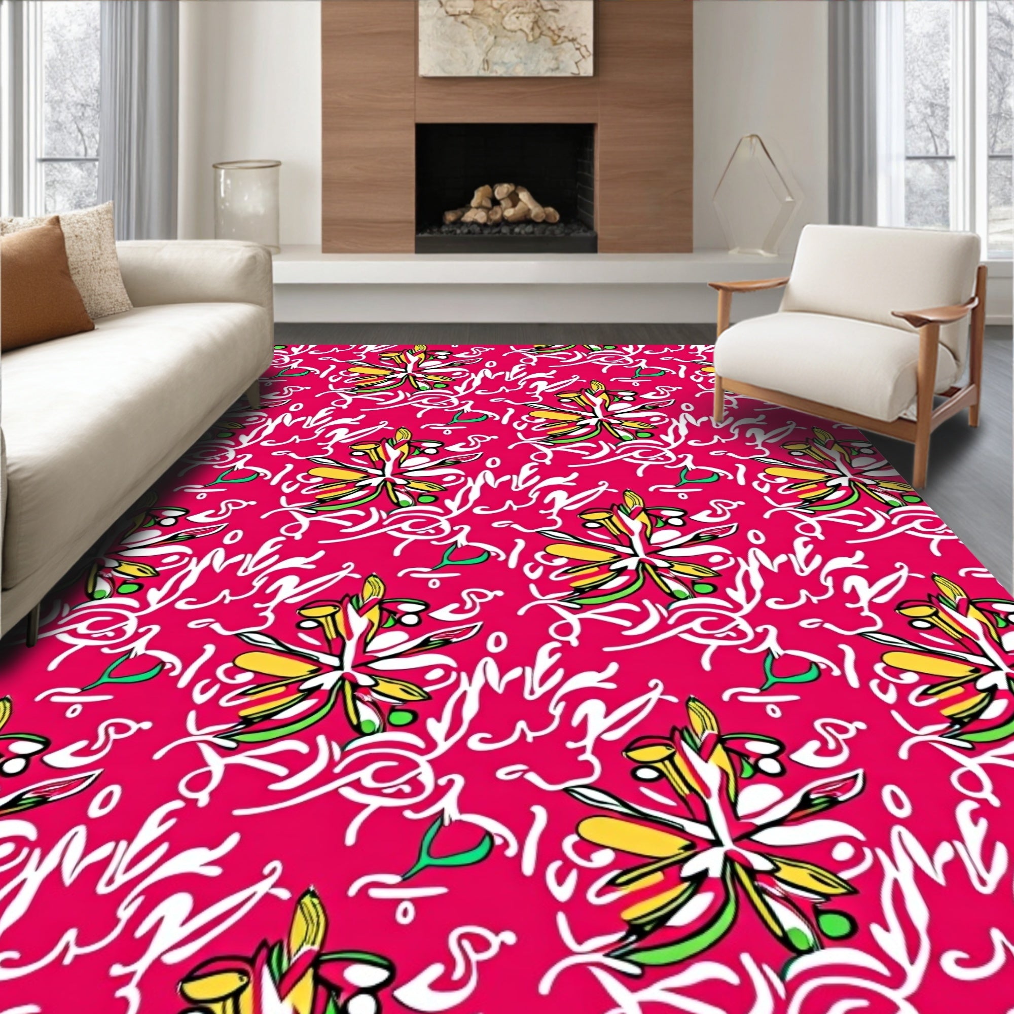 Ultra Soft Area Rug, Non Slip, Stain Resistant, Washable Area Rugs for Living Room, Bedroom, Nordic Snowflake and Cane Motif with Script Lettering(Pink) Overview: