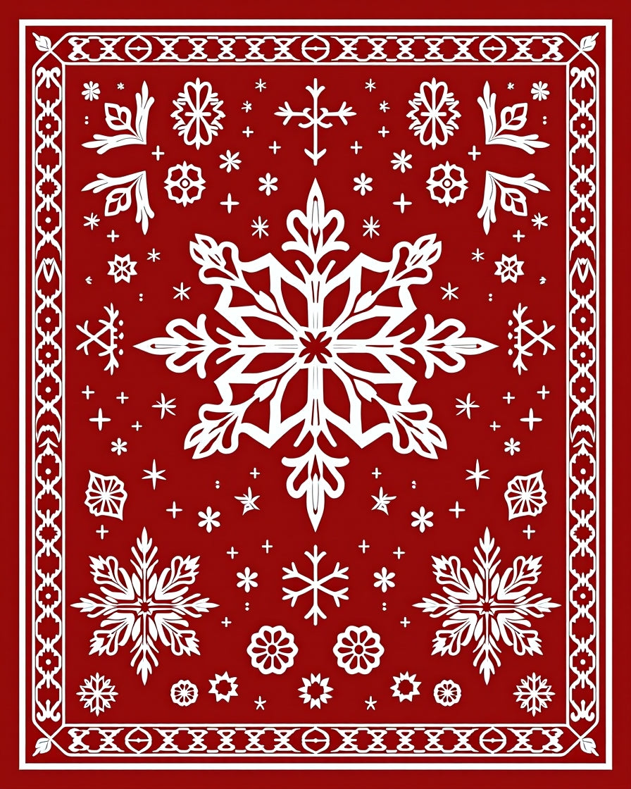 Nordic Snowflake Medallion Festive Holiday Motif Accent(Red)
