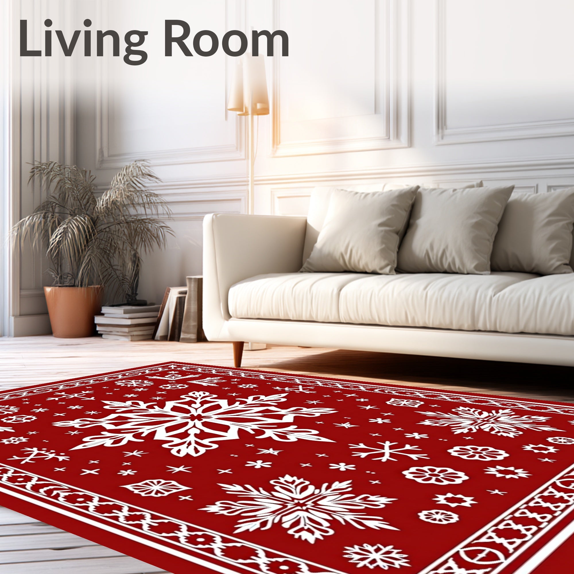 Ultra Soft Area Rug, Non Slip, Stain Resistant, Washable Area Rugs for Living Room, Bedroom, Nordic Snowflake Medallion Festive Holiday Motif Accent(Red) Overview:
