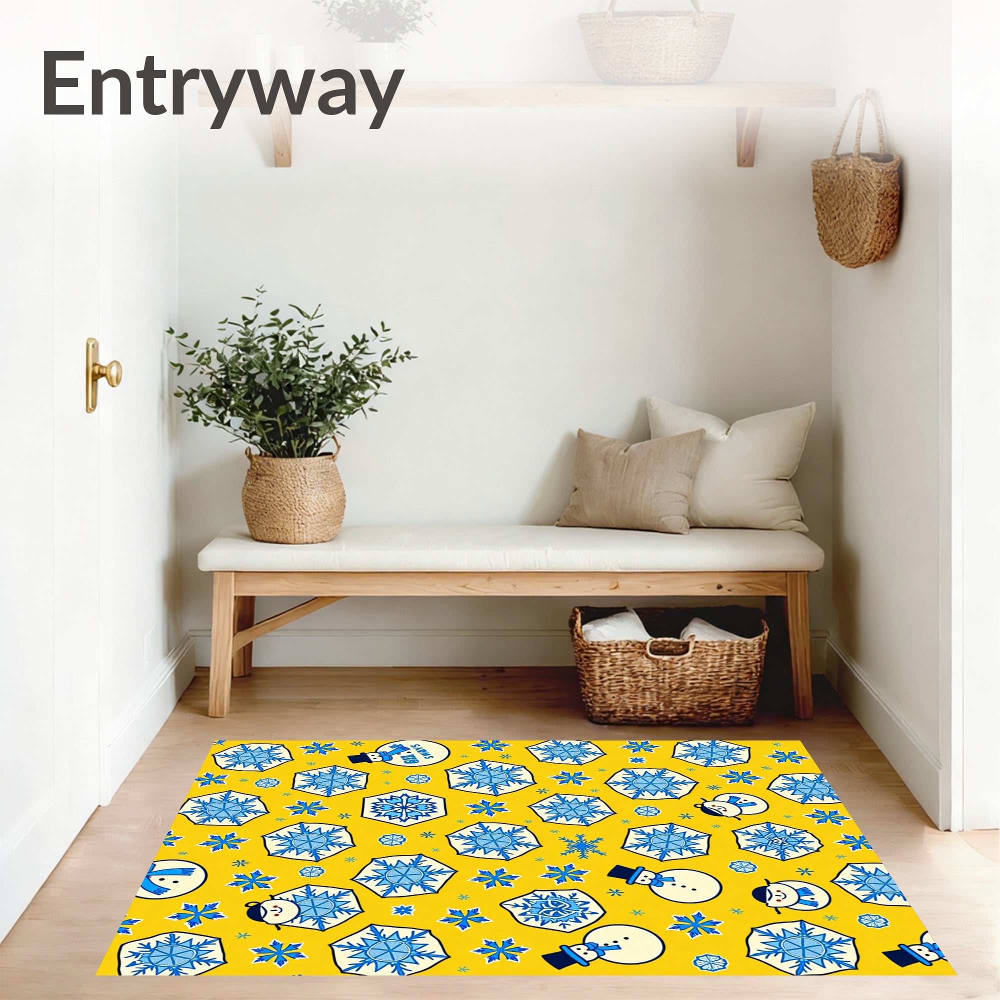Flatwoven High Traffic Area Rug, Nordic Snowman Parade with Twinkling Crystal Flake Accents, Non Slip, Stain Resistant, Washable Area Rugs for Living Room, Bedroom (Yellow) Overview: