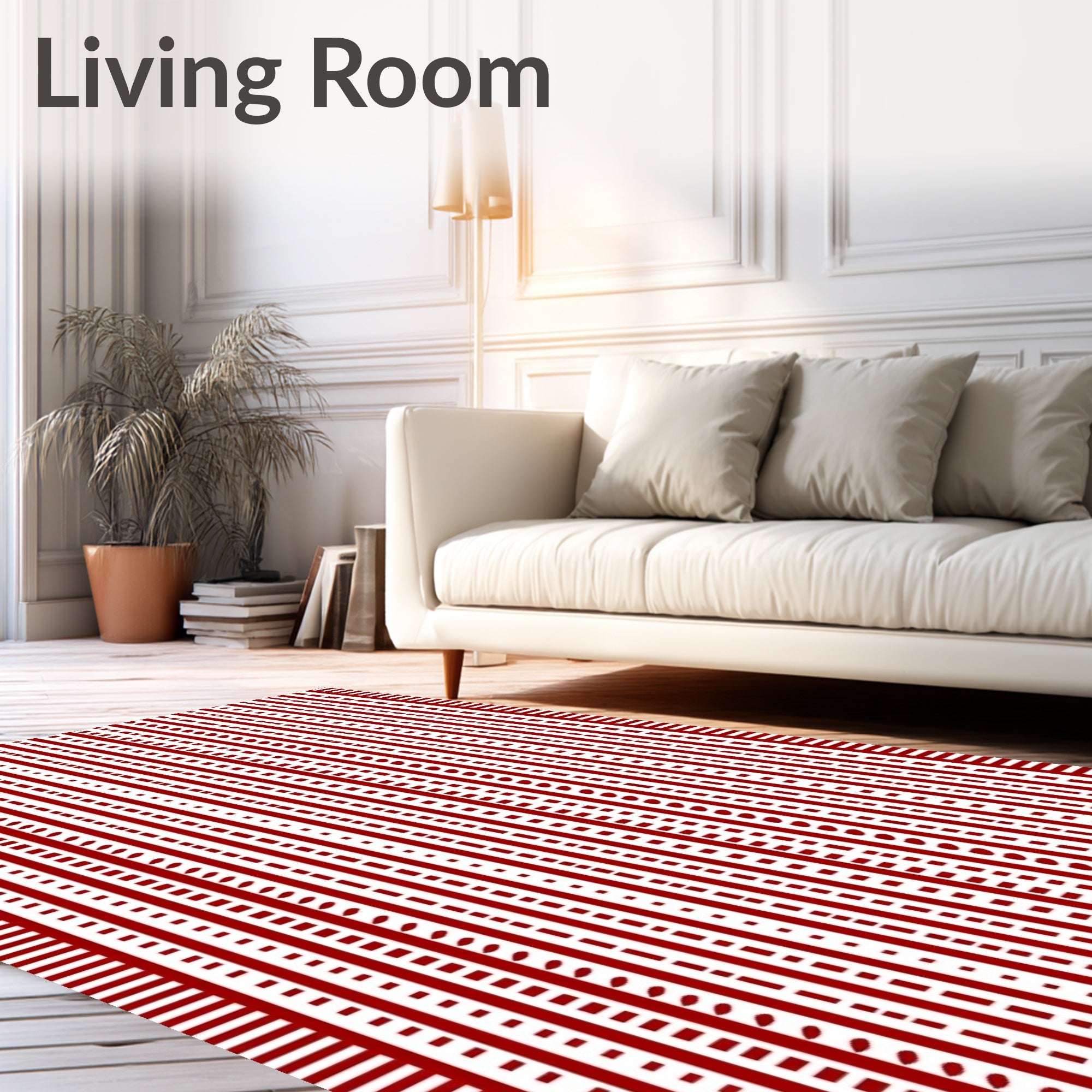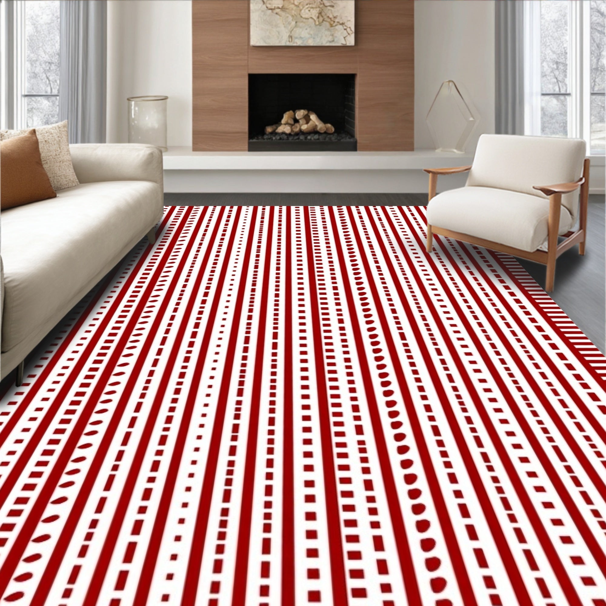 Ultra Soft Area Rug, Non Slip, Stain Resistant, Washable Area Rugs for Living Room, Bedroom, Nordic Stripe With Minimalist Brushstroke Motifs(Red) Overview: