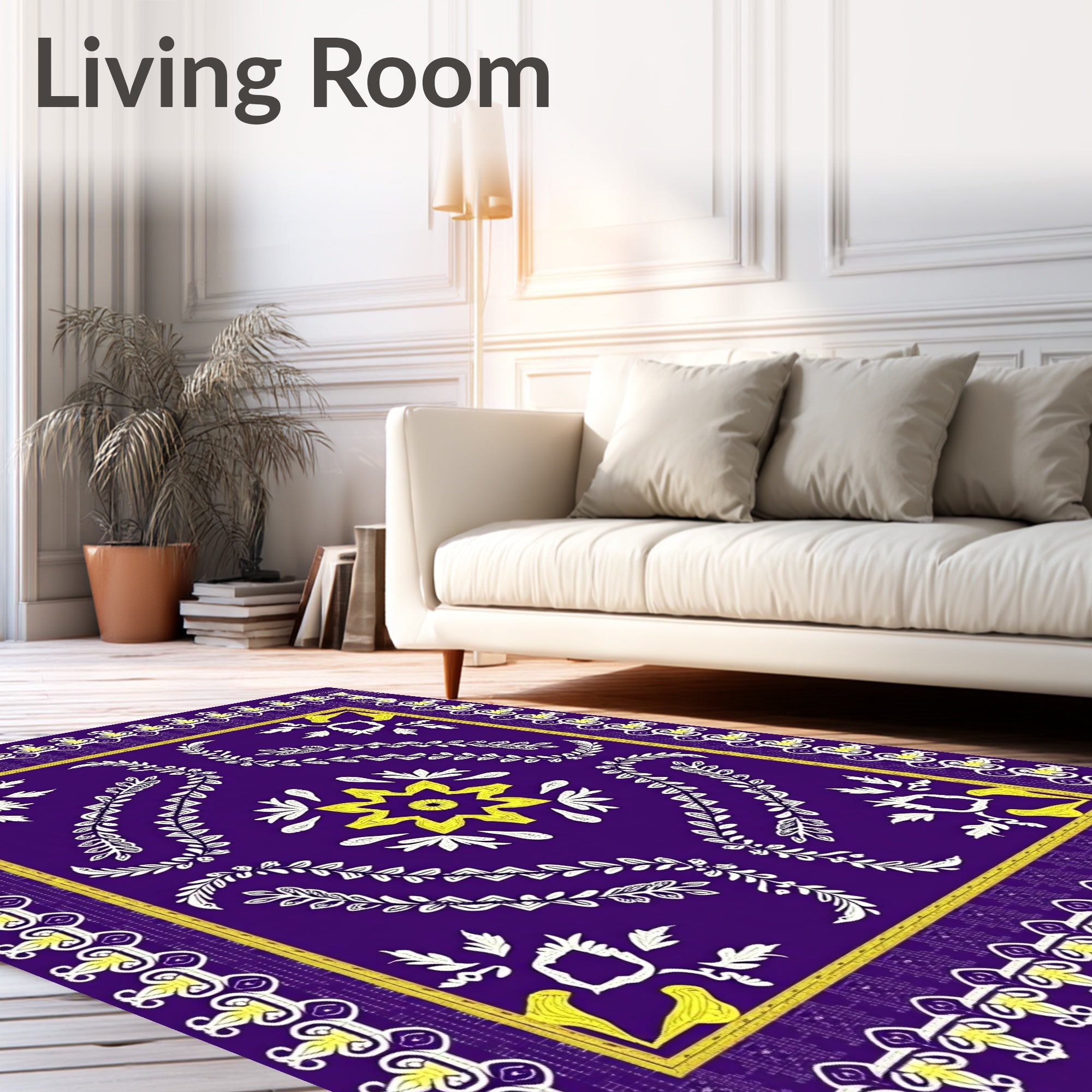 Ultra Soft Area Rug, Non Slip, Stain Resistant, Washable Area Rugs for Living Room, Bedroom, Nordic with Interlocking Winter Branches(Purple) Overview:
