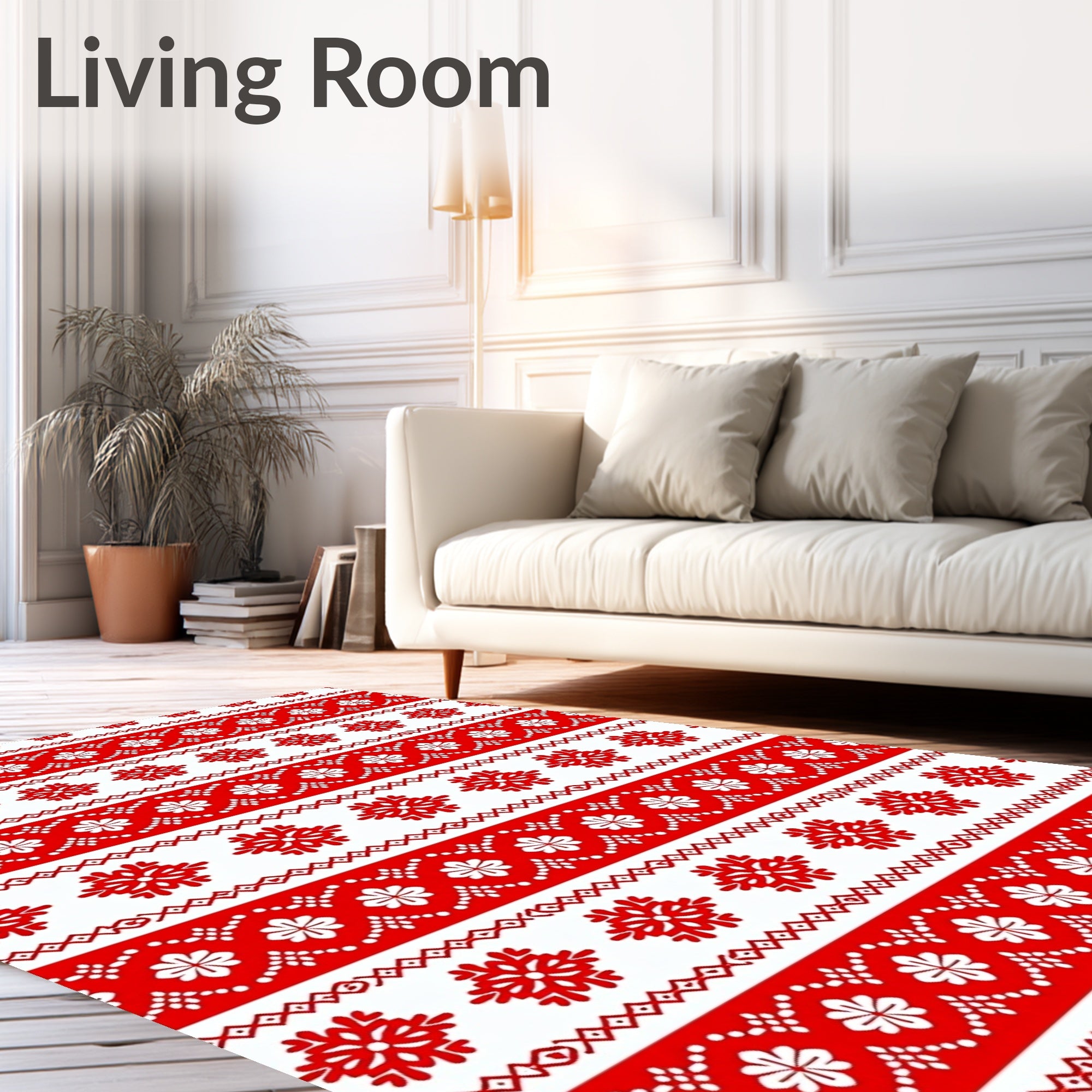 Ultra Soft Area Rug, Non Slip, Stain Resistant, Washable Area Rugs for Living Room, Bedroom, Nordic Yuletide Bands with Crisp Interlocking Snowflake Motifs(Red) Overview:
