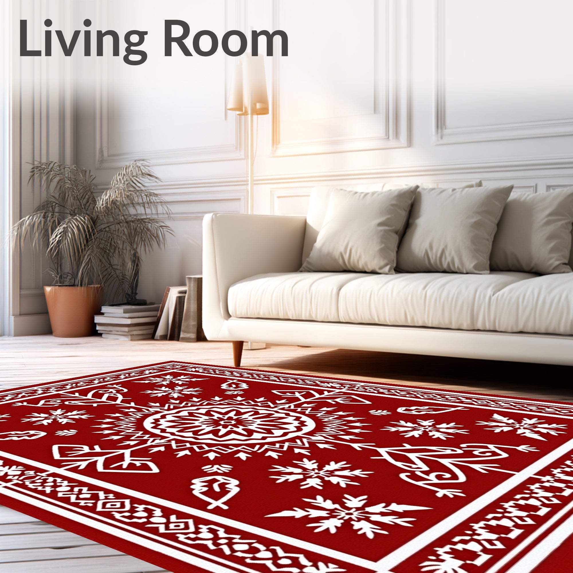 Ultra Soft Area Rug, Non Slip, Stain Resistant, Washable Area Rugs for Living Room, Bedroom, Nordic Yuletide Celebration Motif Elegant Adornment(Red) Overview: