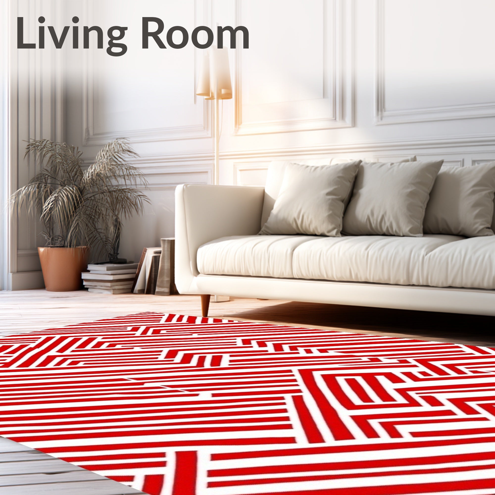Ultra Soft Area Rug, Non Slip, Stain Resistant, Washable Area Rugs for Living Room, Bedroom, Nordic Yuletide Interlocking Chevron Stripe(Red) Overview: